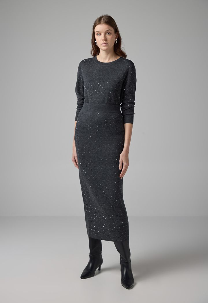 Design: Solid, Regular Fit, Crystal Embellished, Knitted