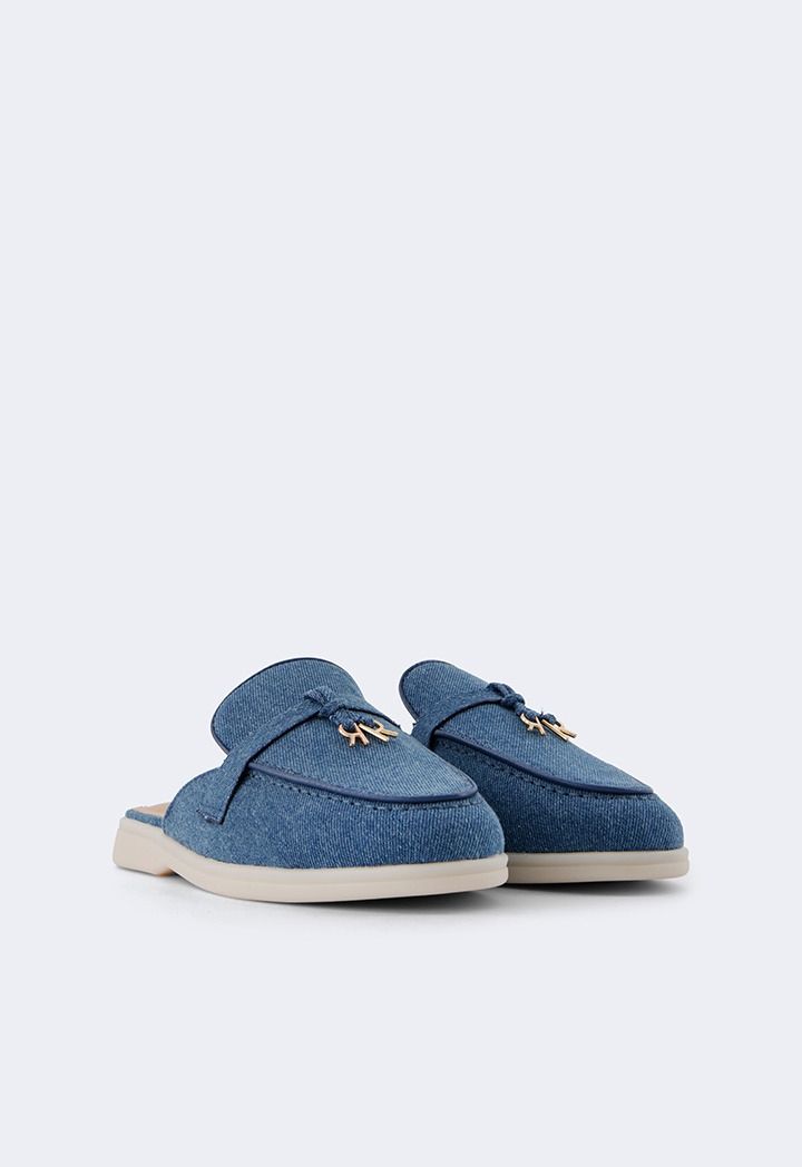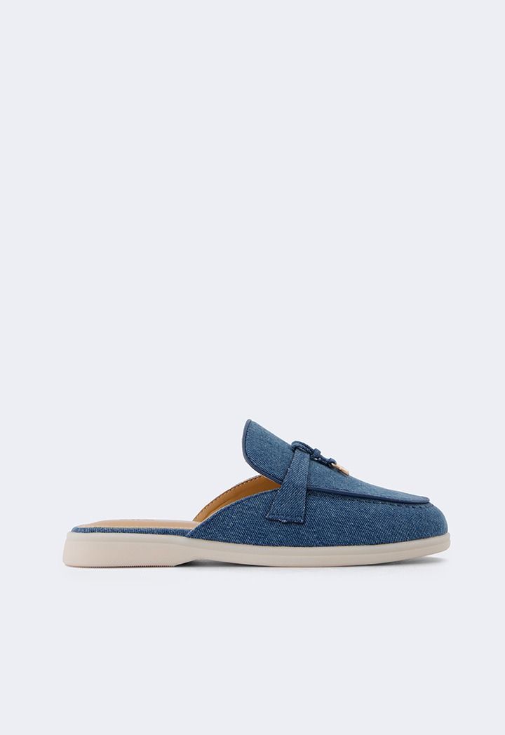 A modern approach to mules, featuring durable denim fabric that adds to its appeal.
