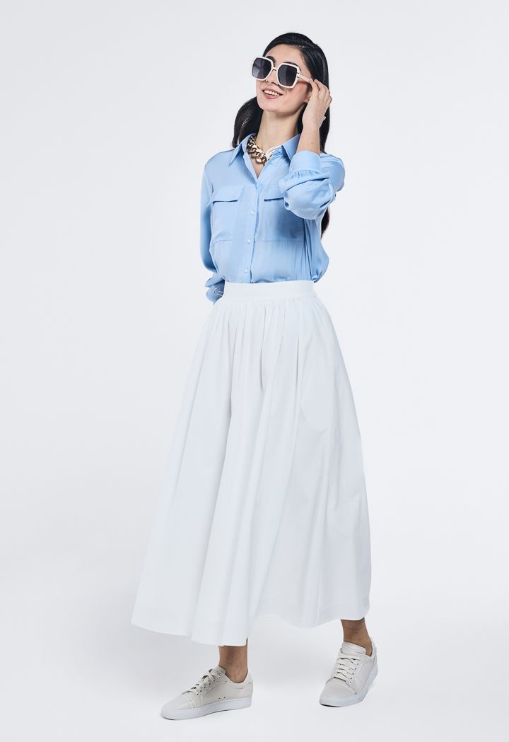 Design : Solid, Drawstring Hem, Flap Pockets, Smocked Back