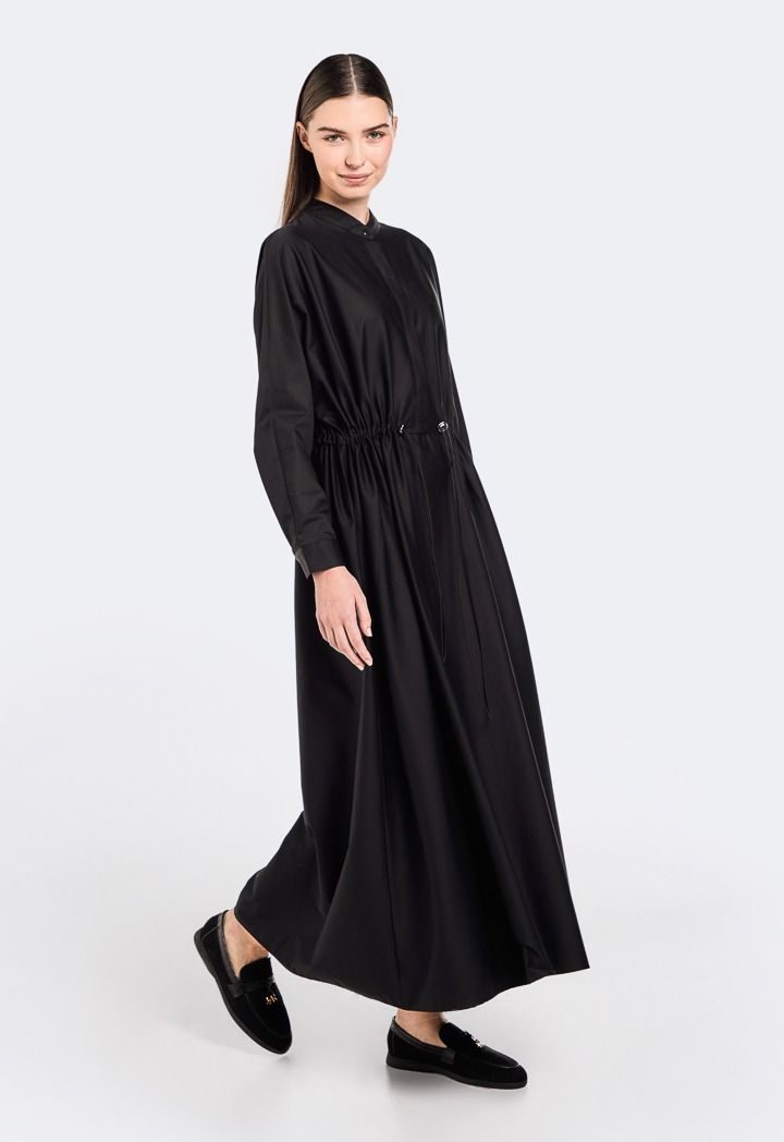 Solid Drawstring Waist Dress |