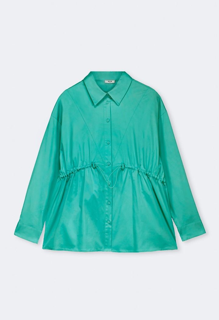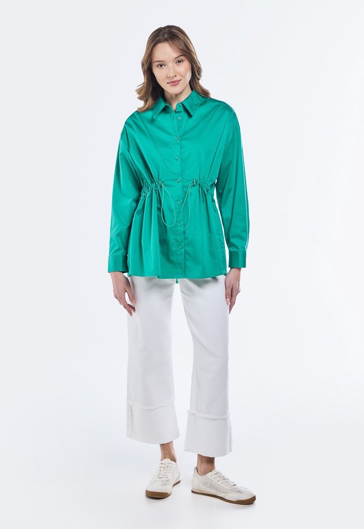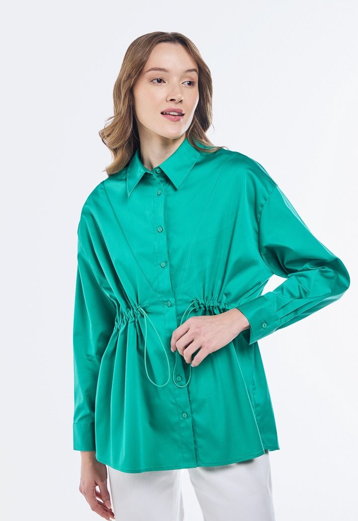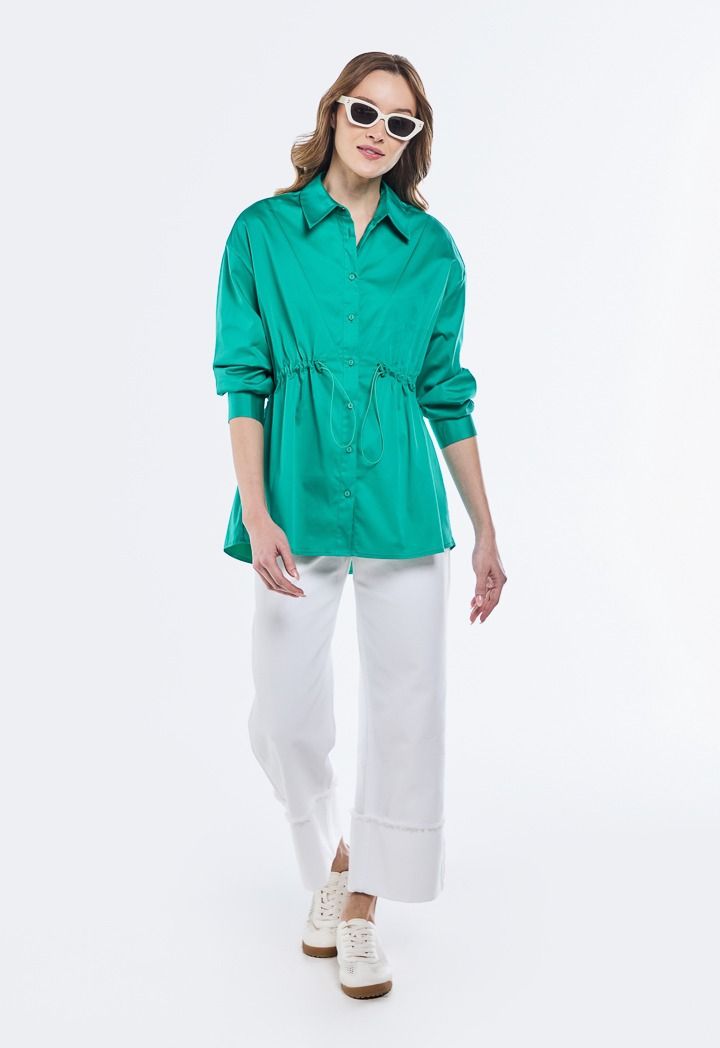 Solid shirt with an adjustable waist tie, combining comfort and style for a modern, versatile look perfect for any occasion.