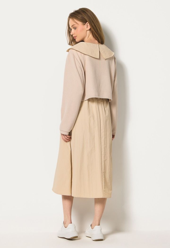 Charming and playful, this A-line dress and sweater set is as easy to wear as it is adorable.