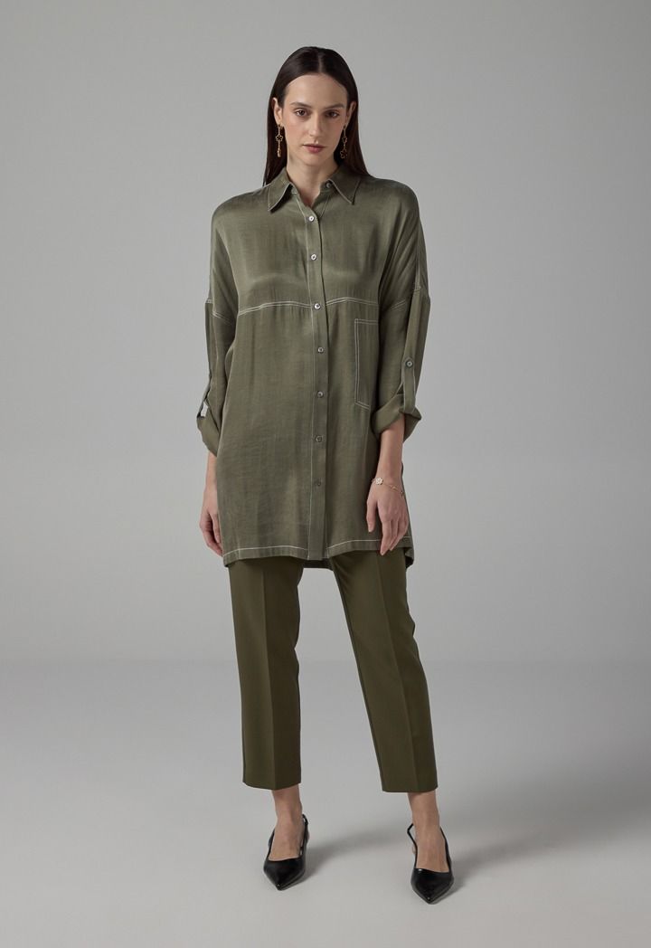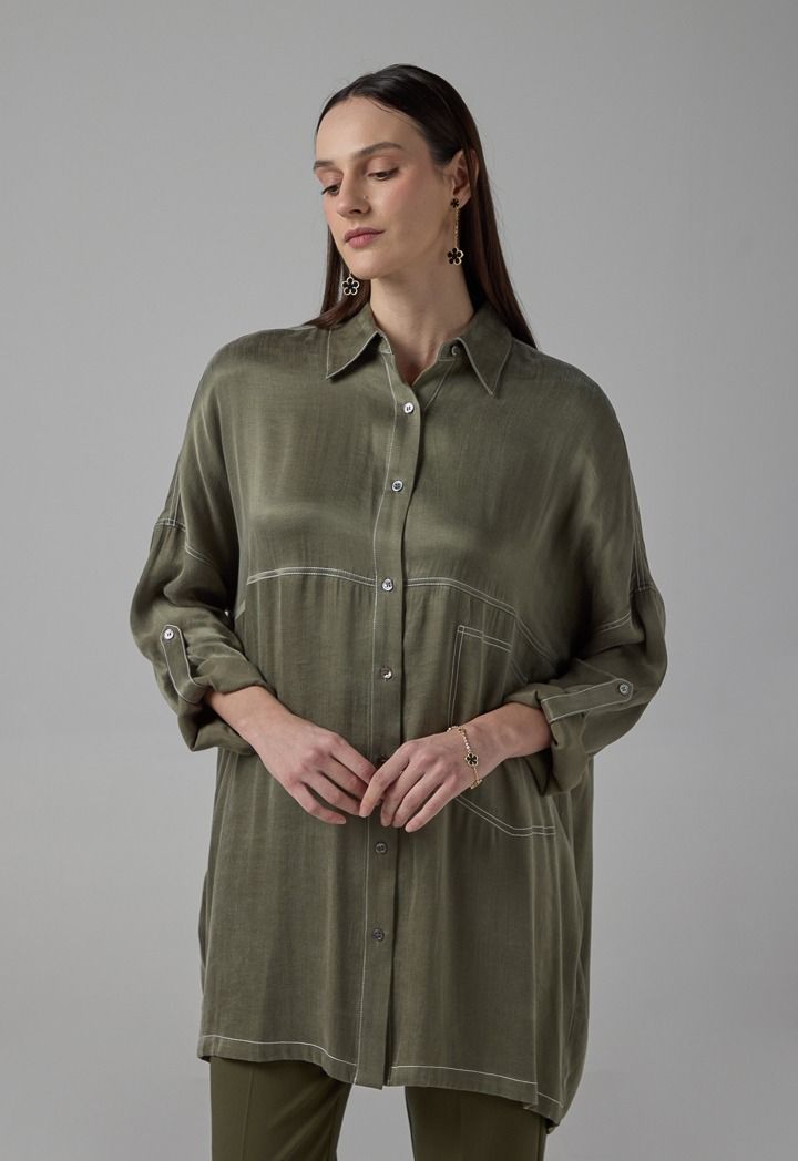 This shirt embodies a harmonious blend of classic and modern tailoring, exuding an enduring charm.
