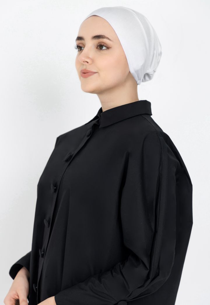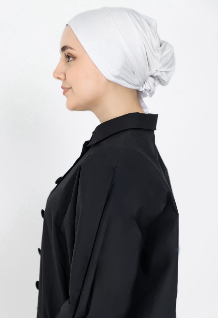 Cover your hair in comfort and security with this undercap that features a self tie ribbon back and an elastic bun.
