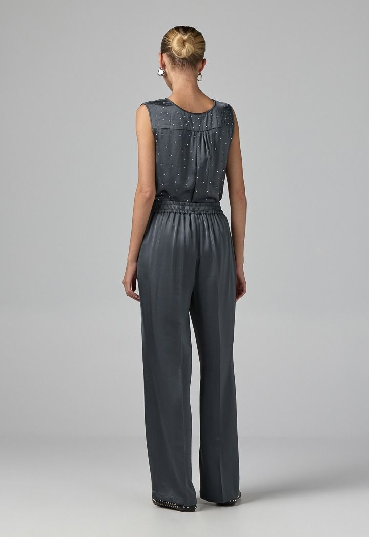 These solid elastic waist trousers can be your perfect work outfit with a matching shirt.