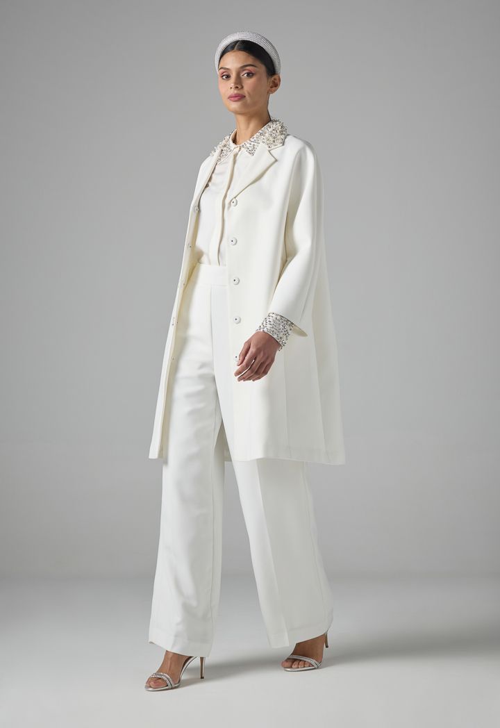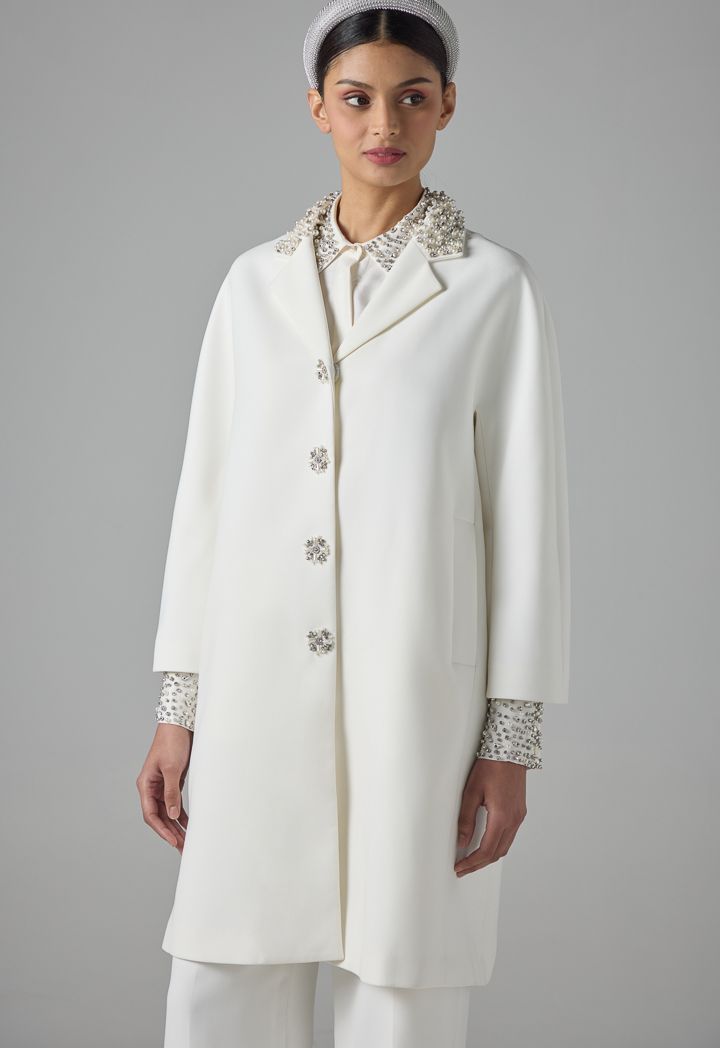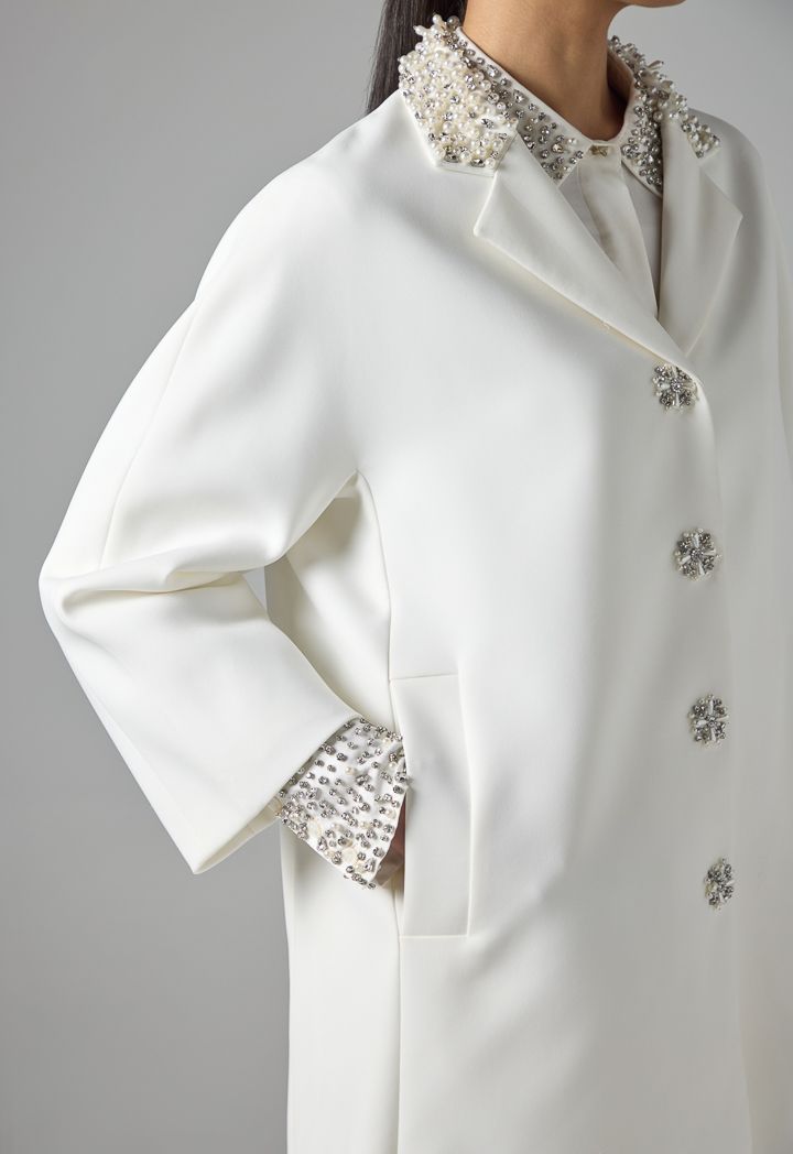 Neckline: Notch Collar Embellished With Crystal And Faux Pearl
