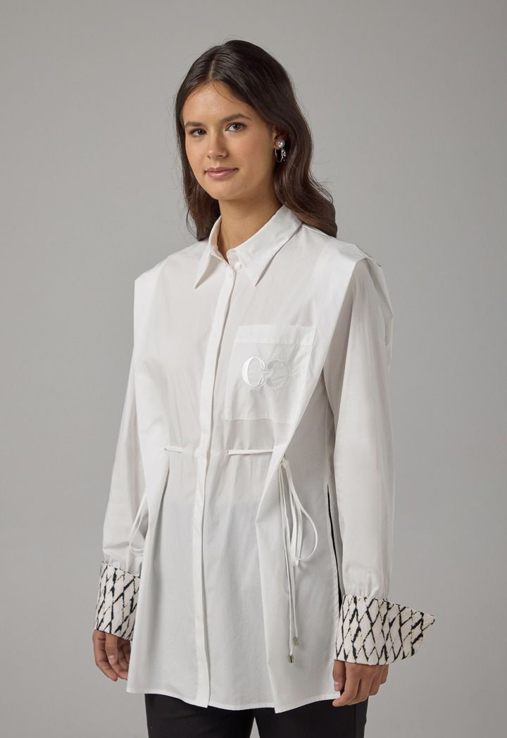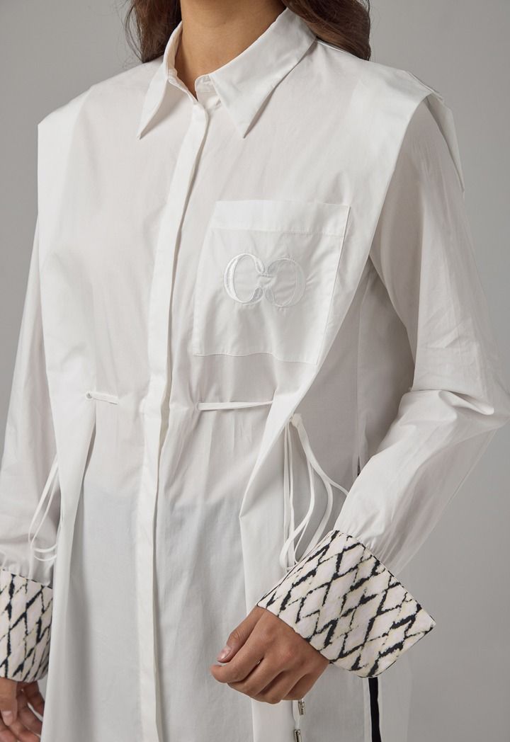 Design: Solid, Embroidered Monogram, Front Pocket, Side Slit, Tie At Waist