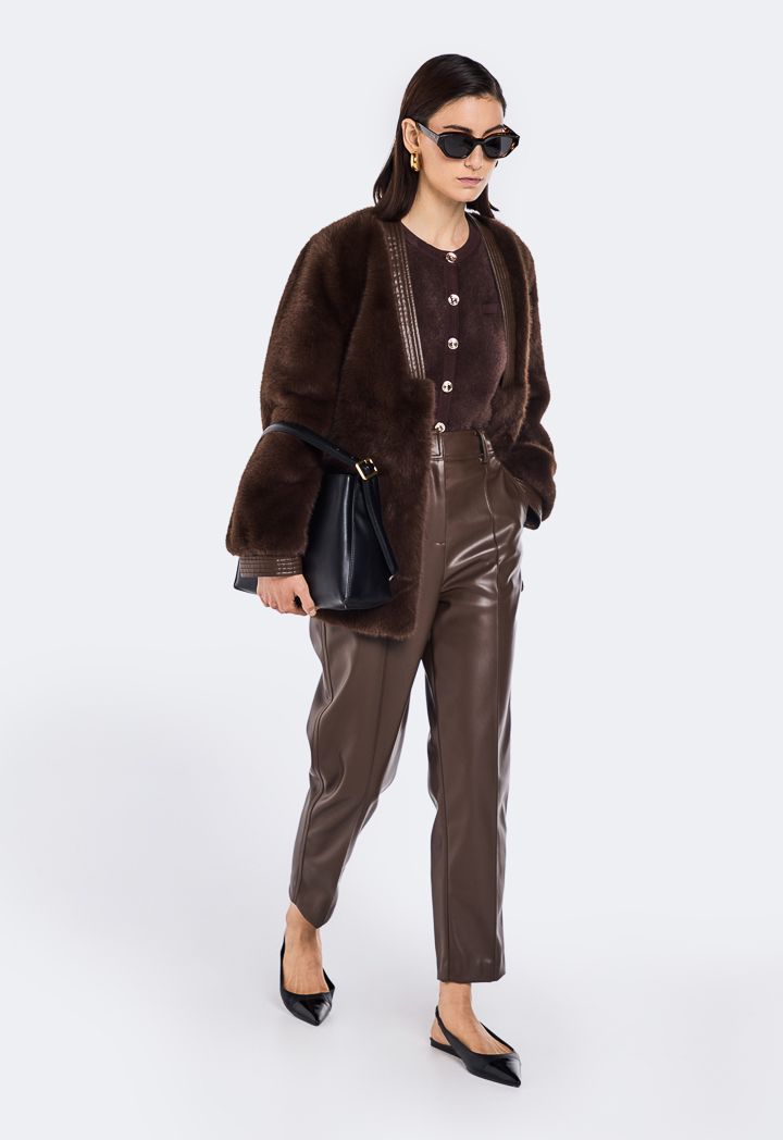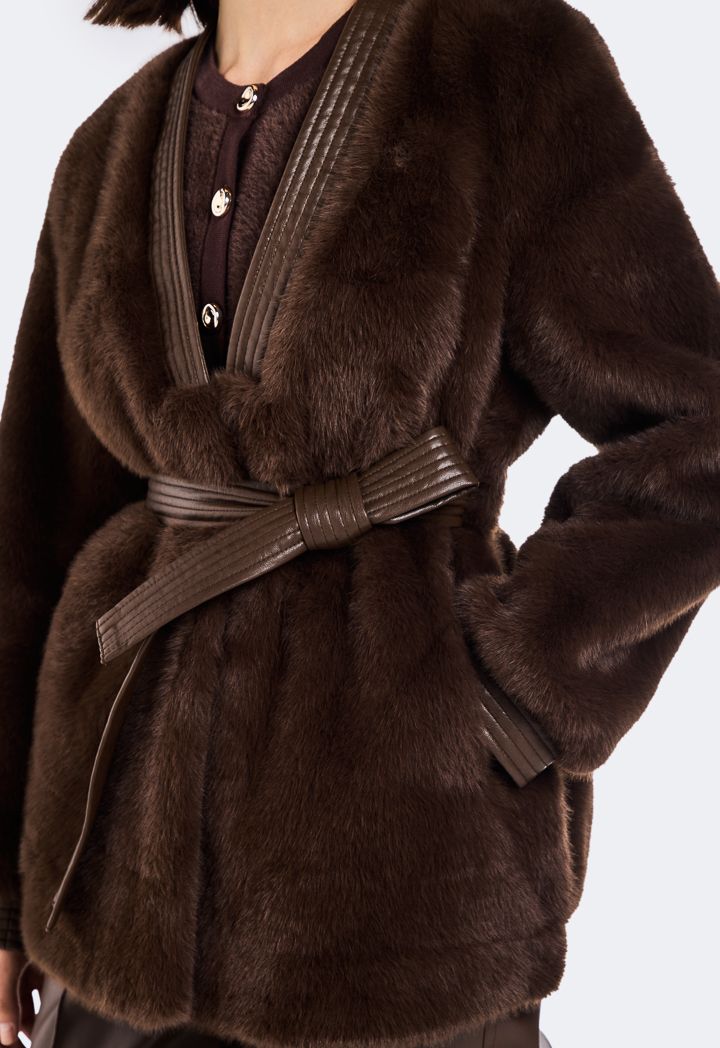 Design: Solid, PU Leather Details, Faux Fur, Belted