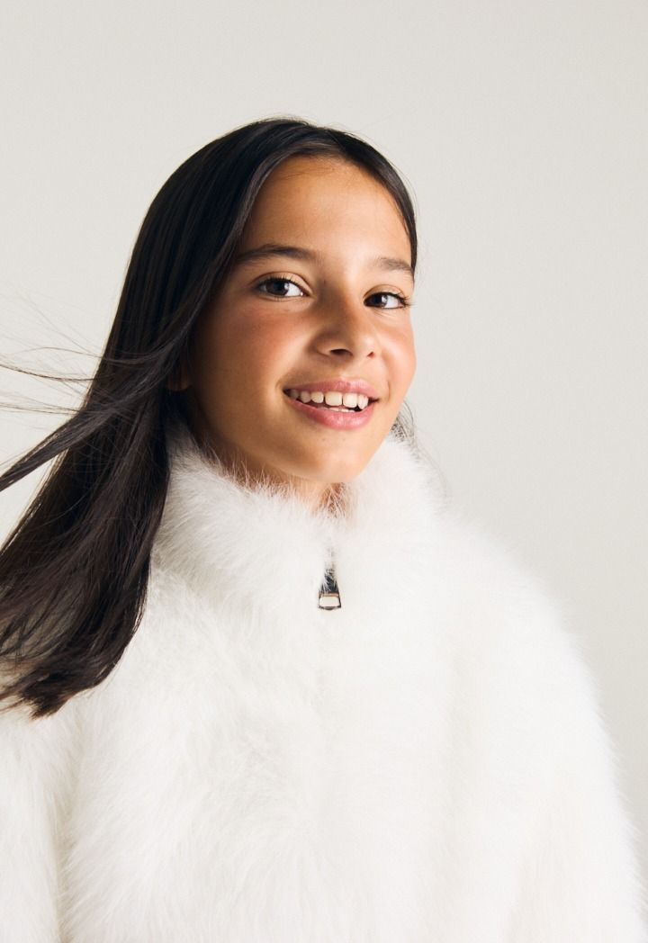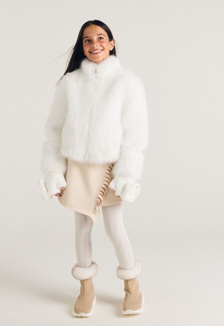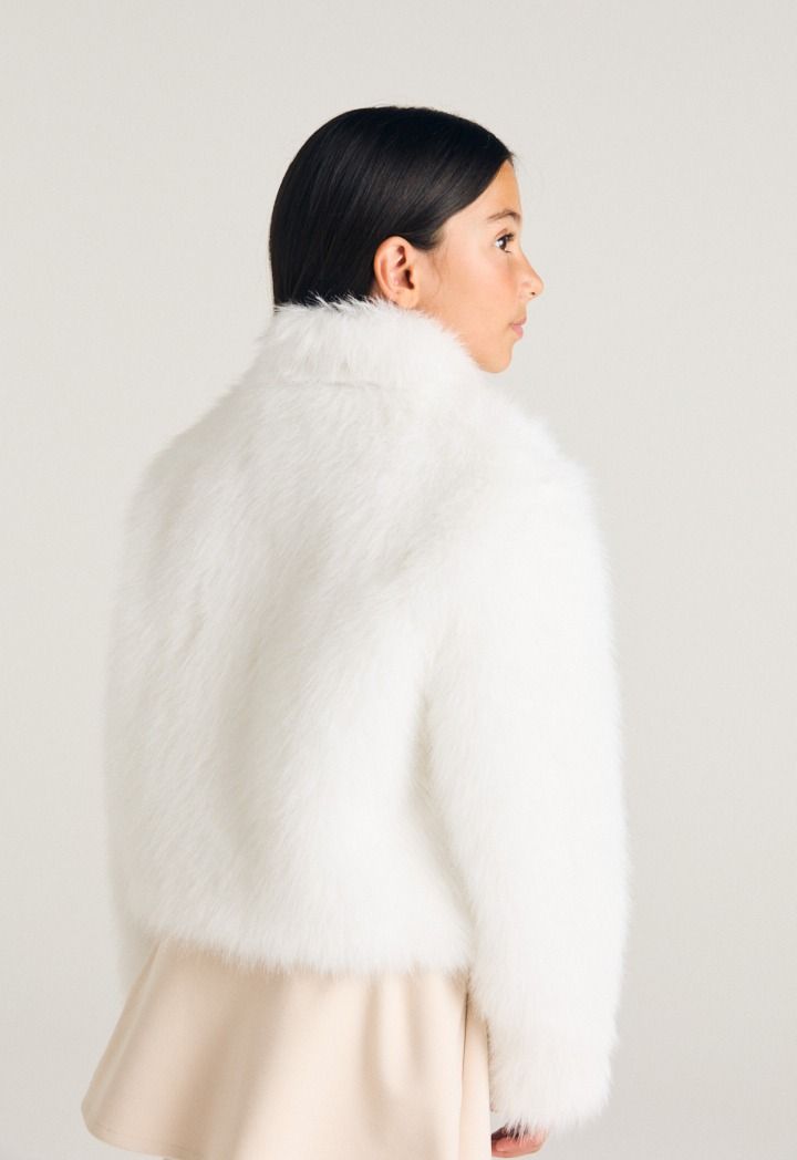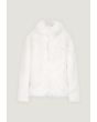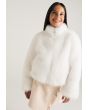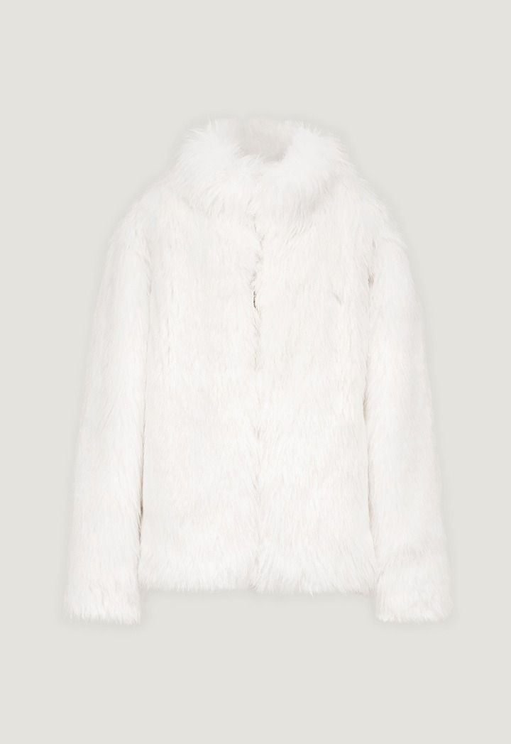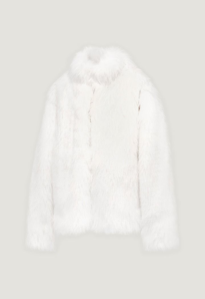 A luxurious jacket that features a solid faux fur design and a front zipper.
