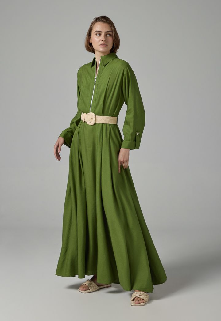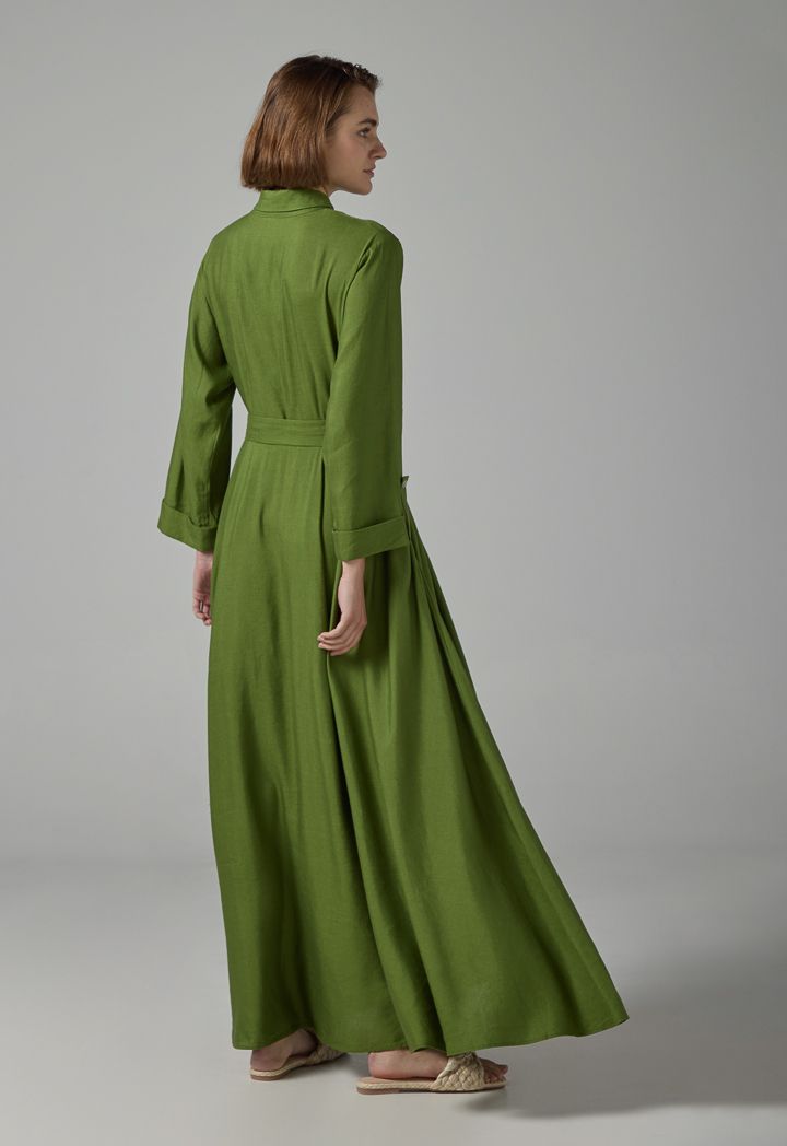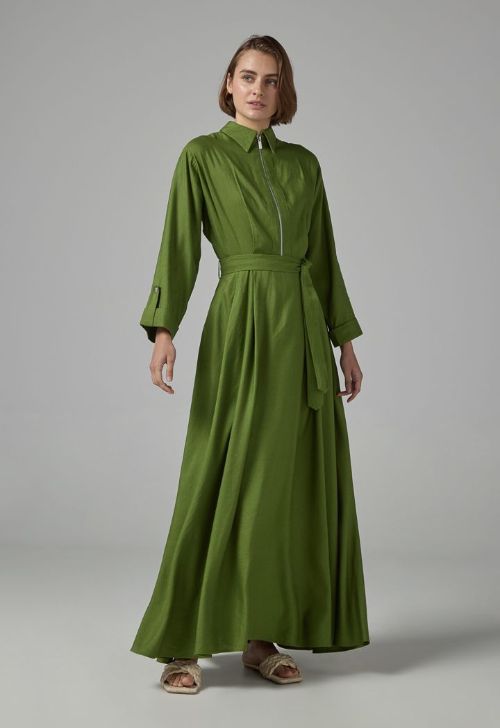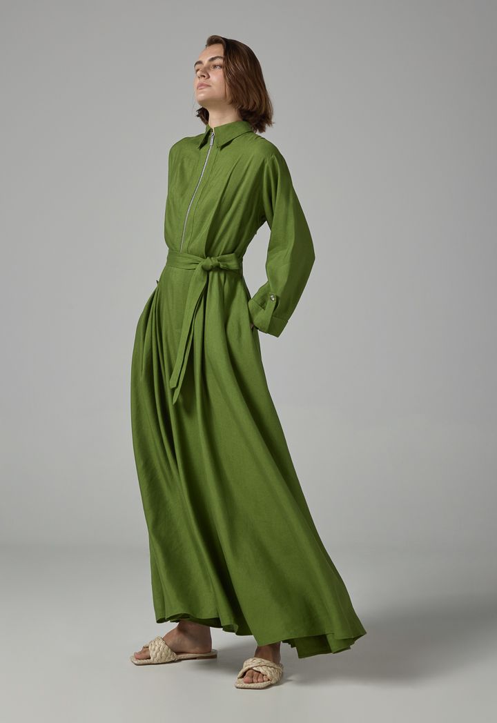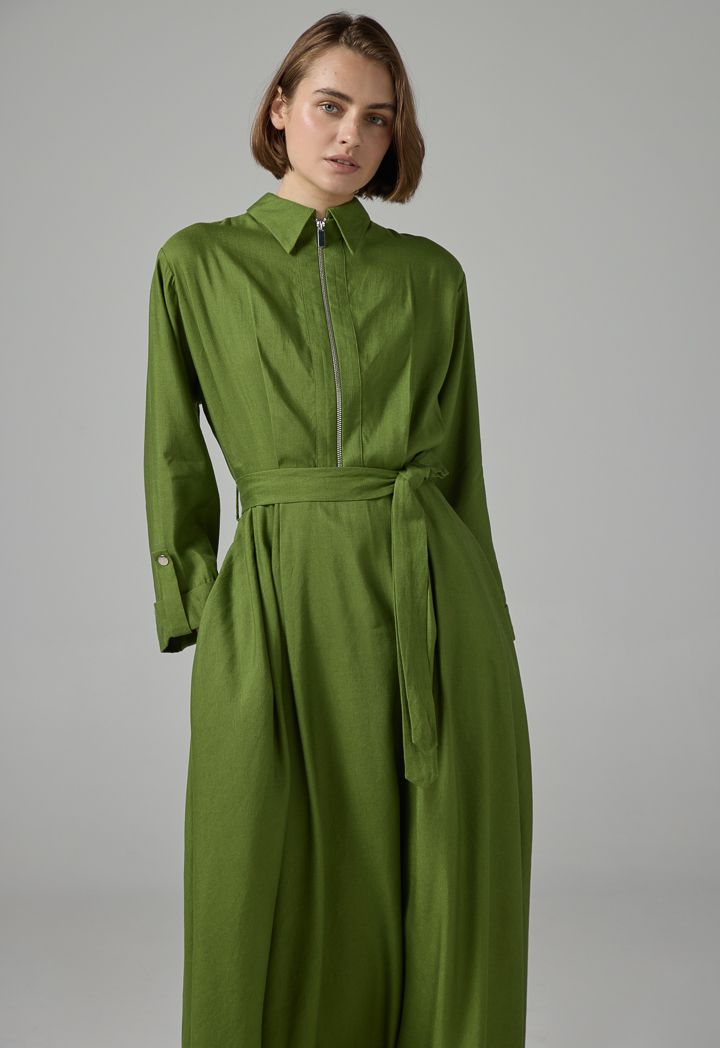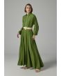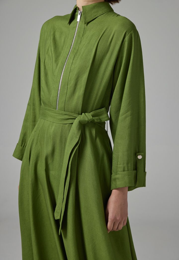 Design: Solid, Flared, Self Fabric Belt, Pleated, Pockets