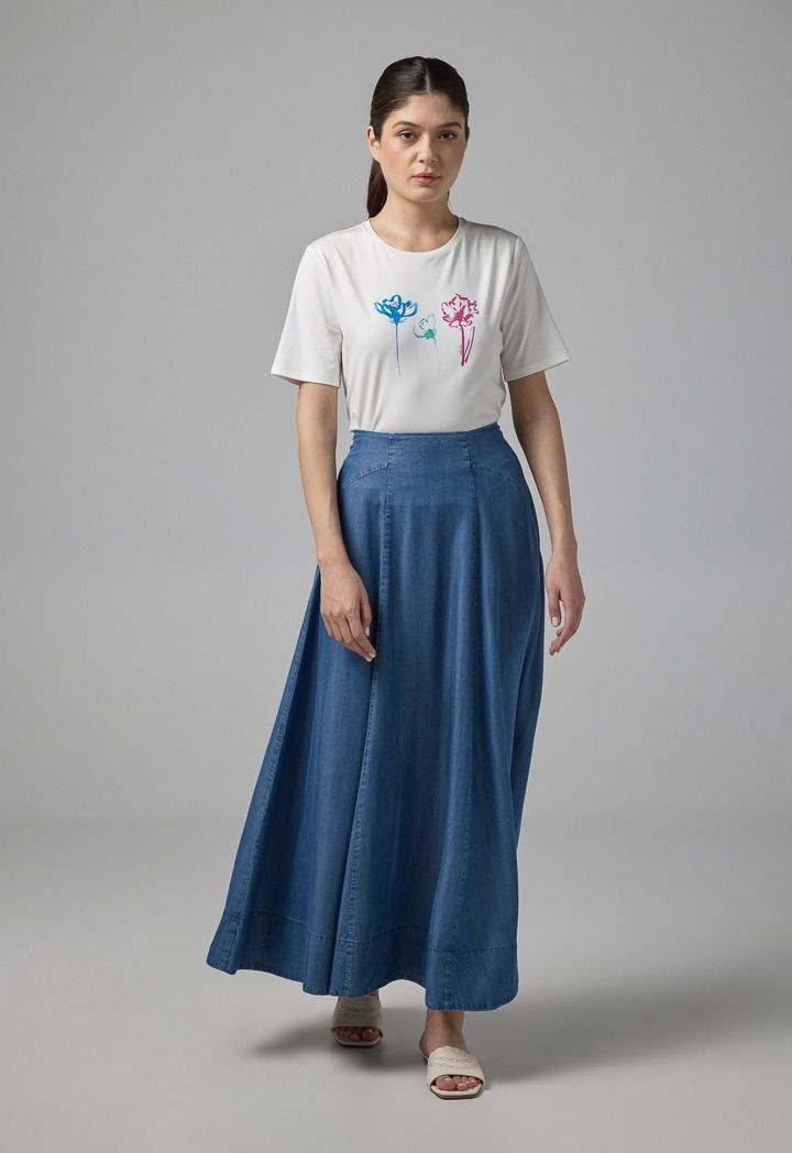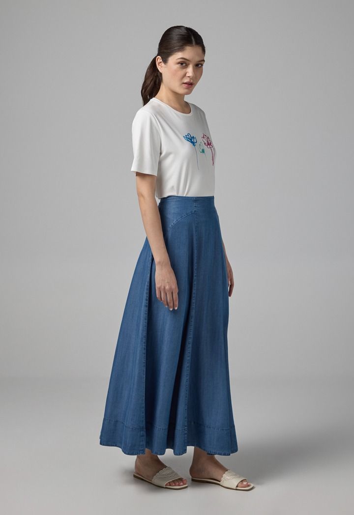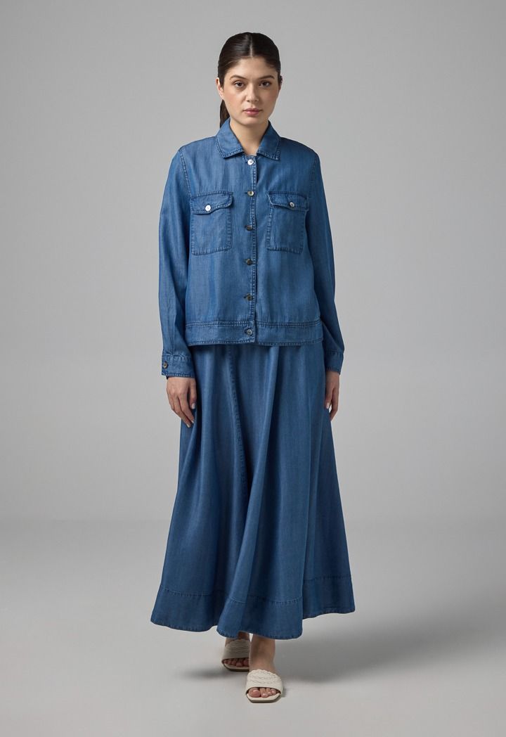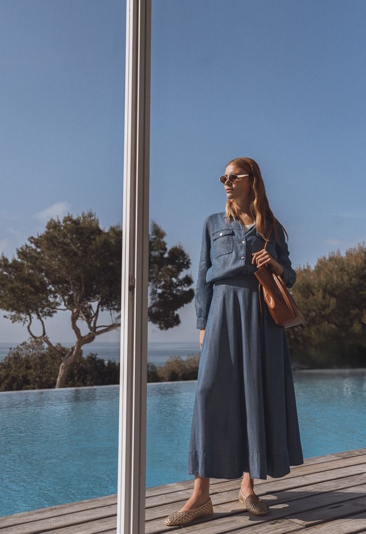 A new season style you'll love to wear. Crafted from denim and flared style.