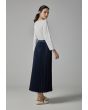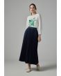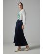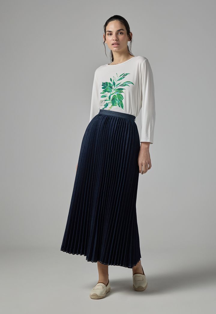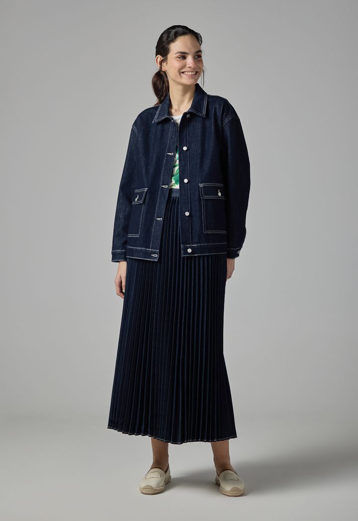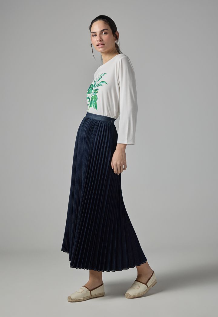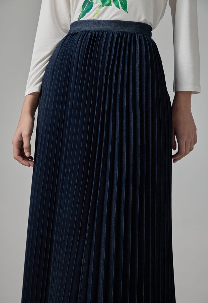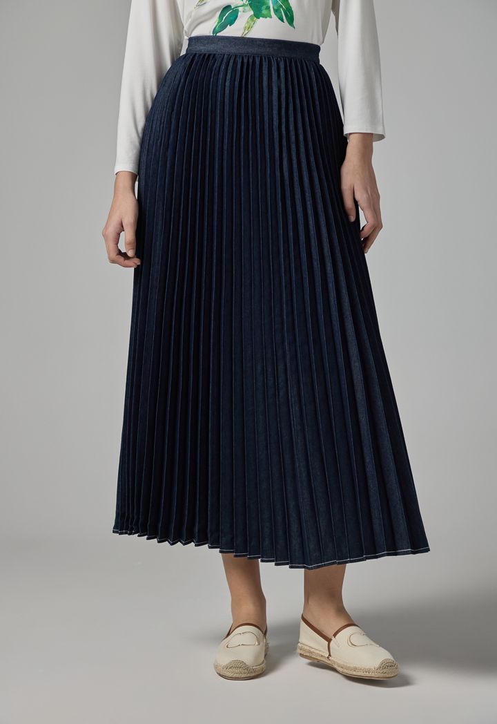 Solid Flared Pleated Denim Skirt |