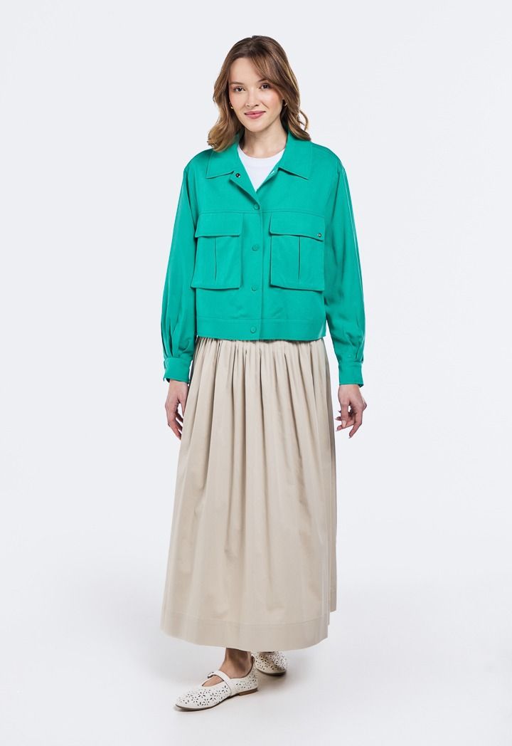 Design: Solid, Flared, Pleated, Attached Lining