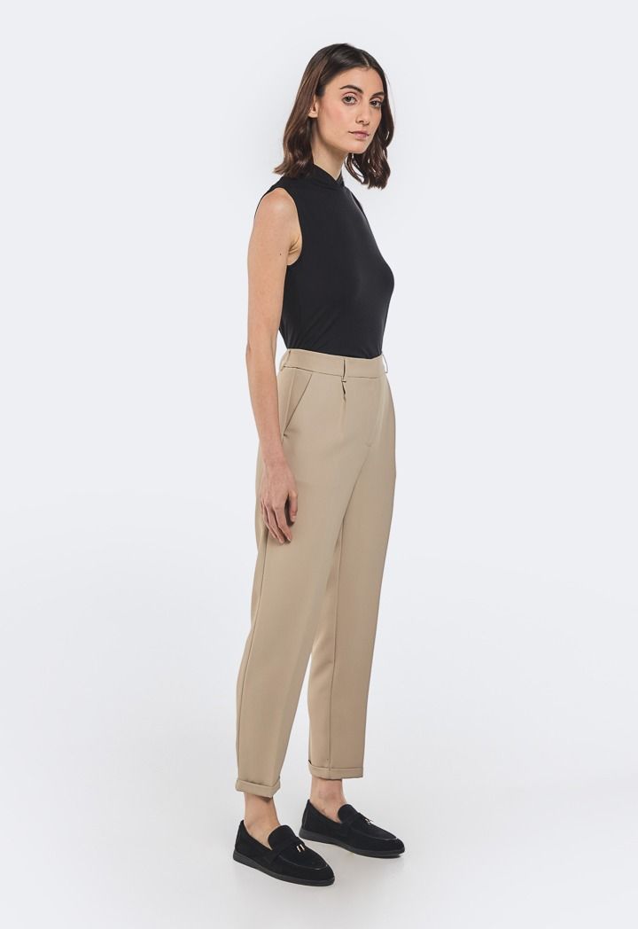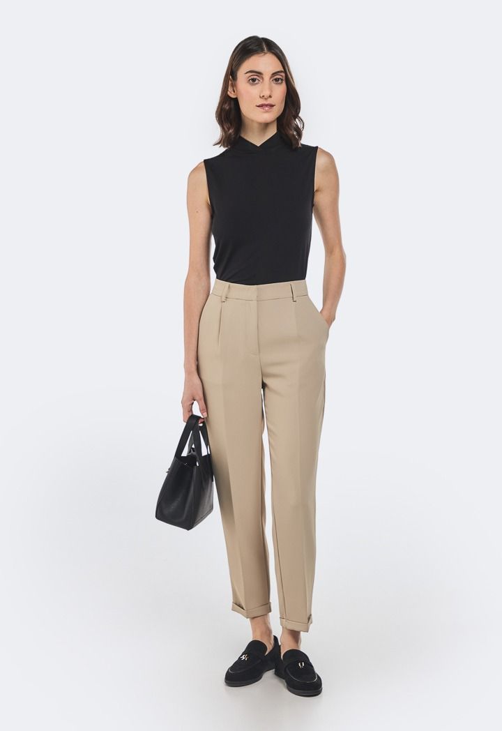 Women's Solid Folded Hem Trousers | Riva Fashion