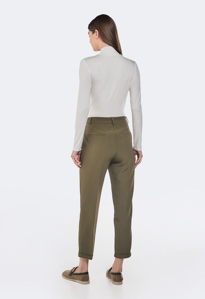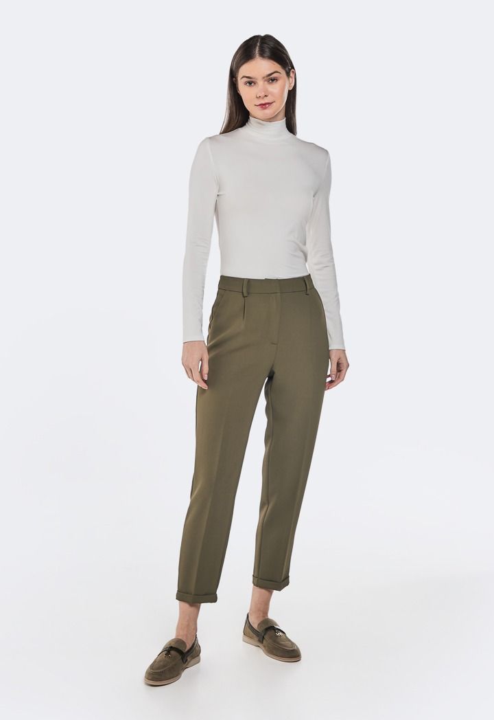Design : Solid, Side Pockets, Folded Hem, High Waist, Peg Leg