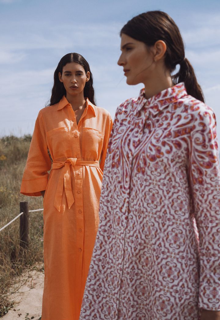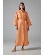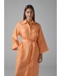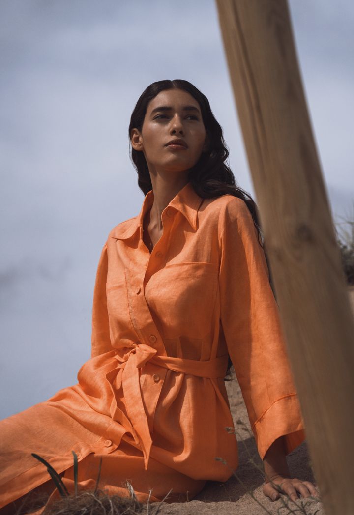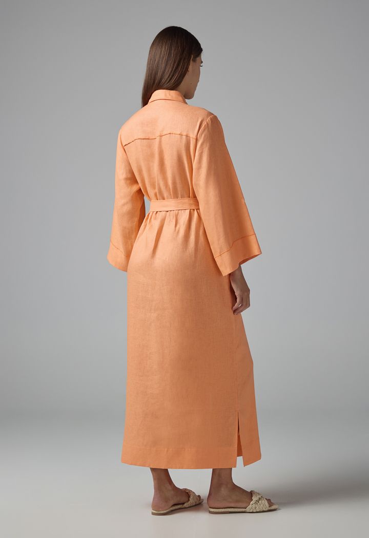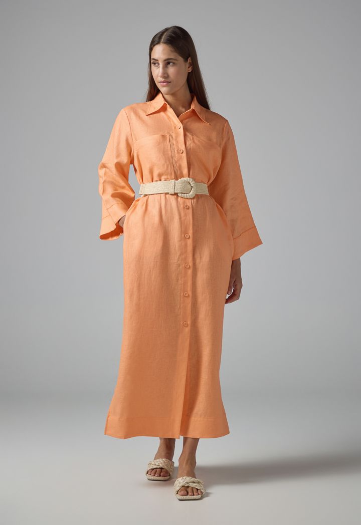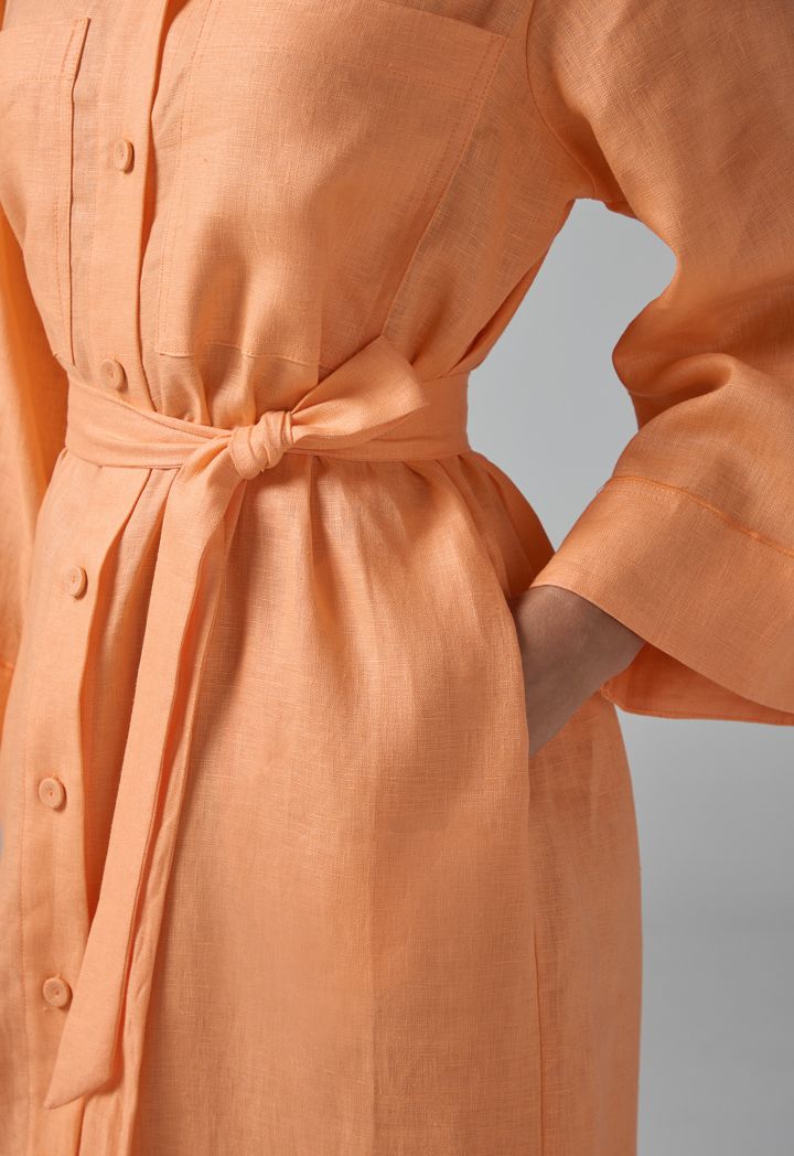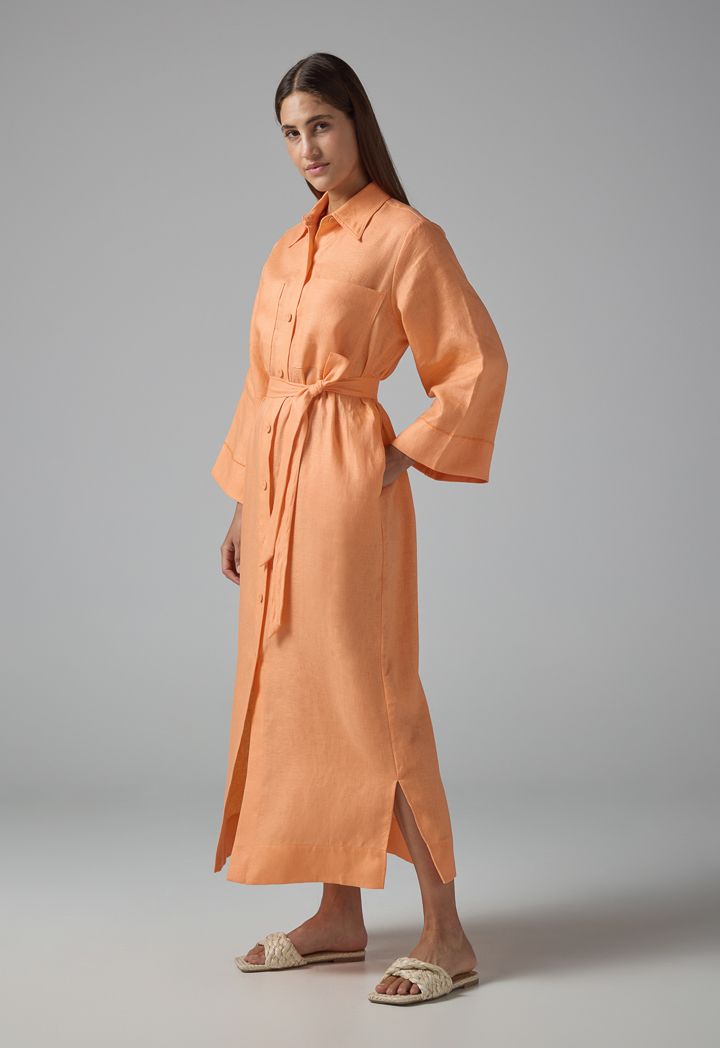 Design: Solid, Self Fabric Belt, Pockets, Side Slit At Hem, Linen
