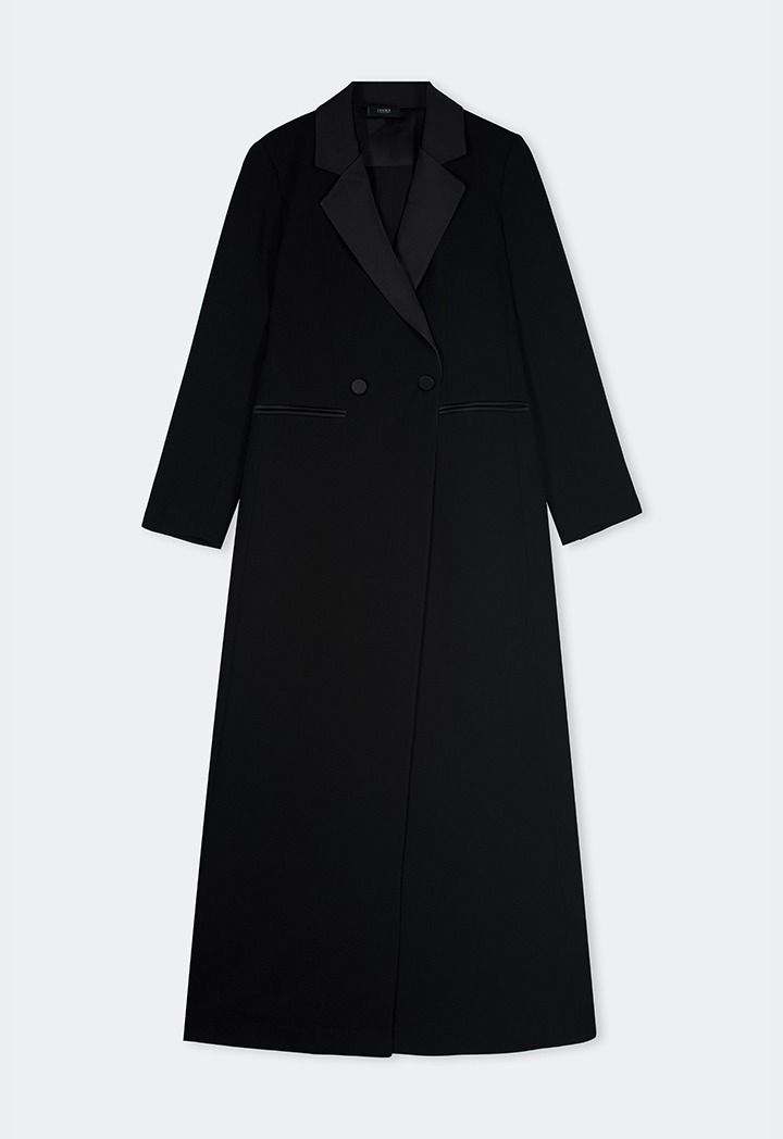 Design: Solid, Double Breasted, Front Pockets, Attached Lining, Back Slit