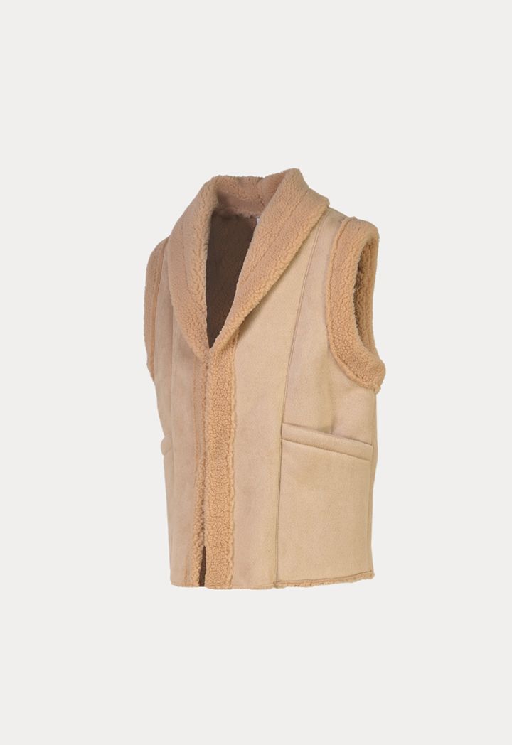 Solid Fur Lined Collared Sleeveless Gilet | Riva Fashion