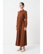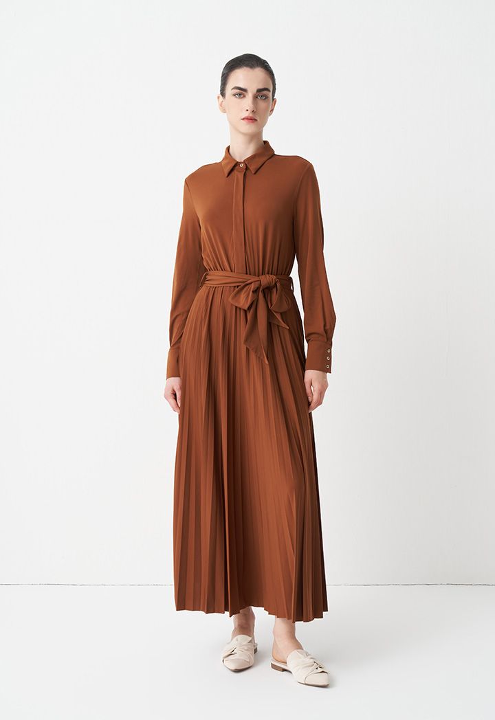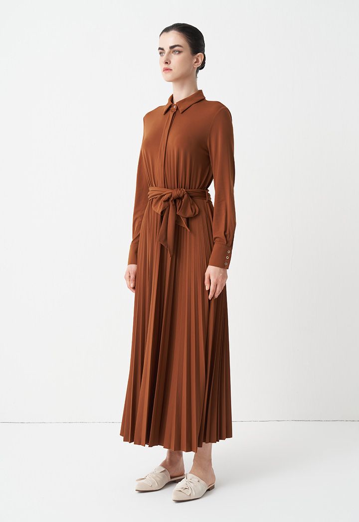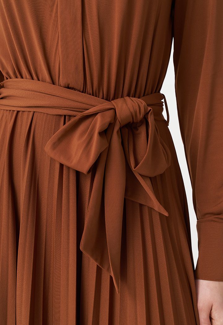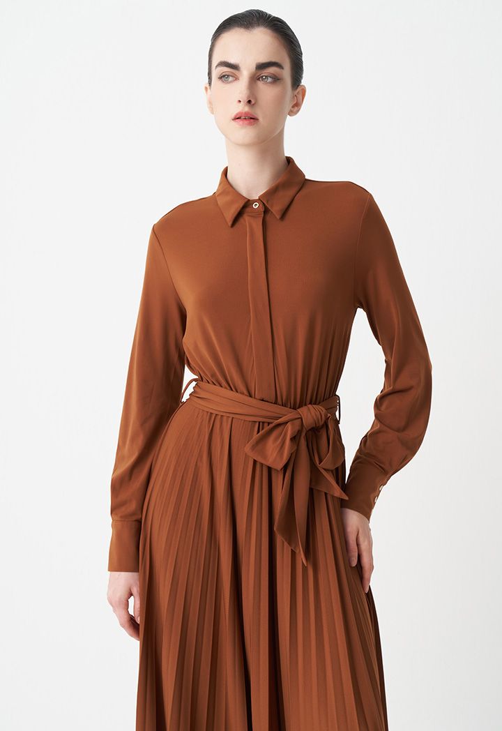 Design: Solid, Pleated, Half Buttons, Self Fabric Belt, Elasticated Waist