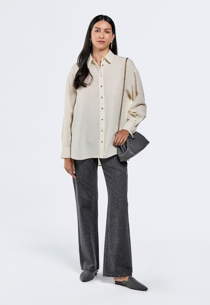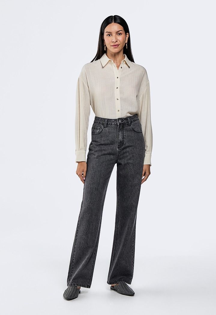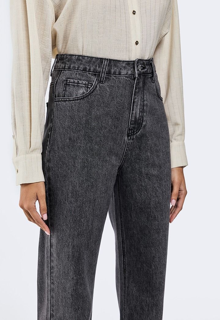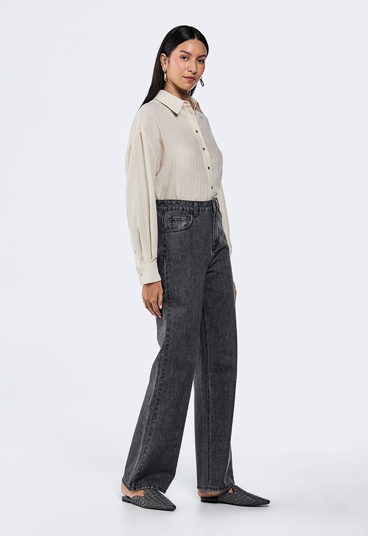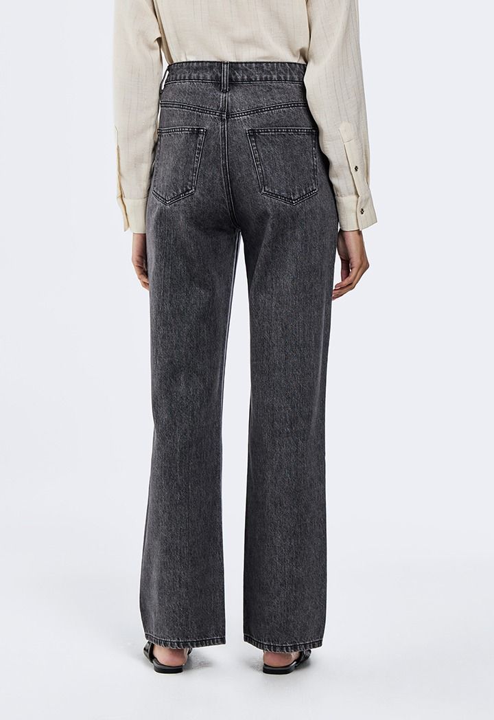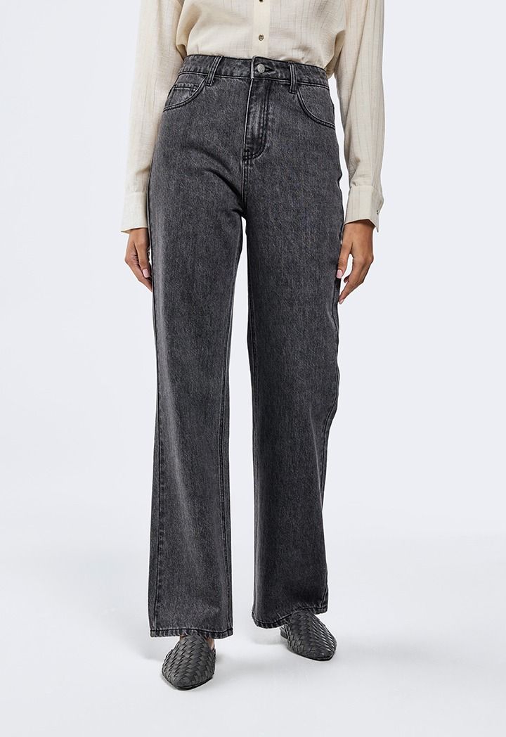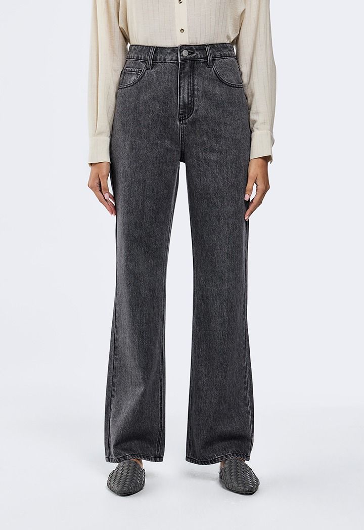 Design : Denim, Solid, High Waist, Straight Cut, Side & Back Pockets