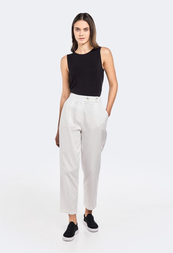 Design: Solid, Side Pockets, Pleated Waist, High Waist
