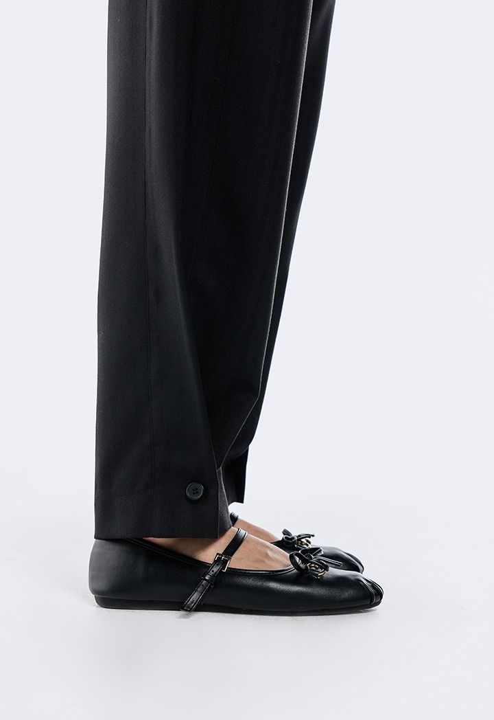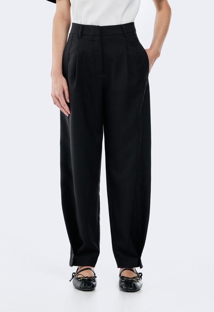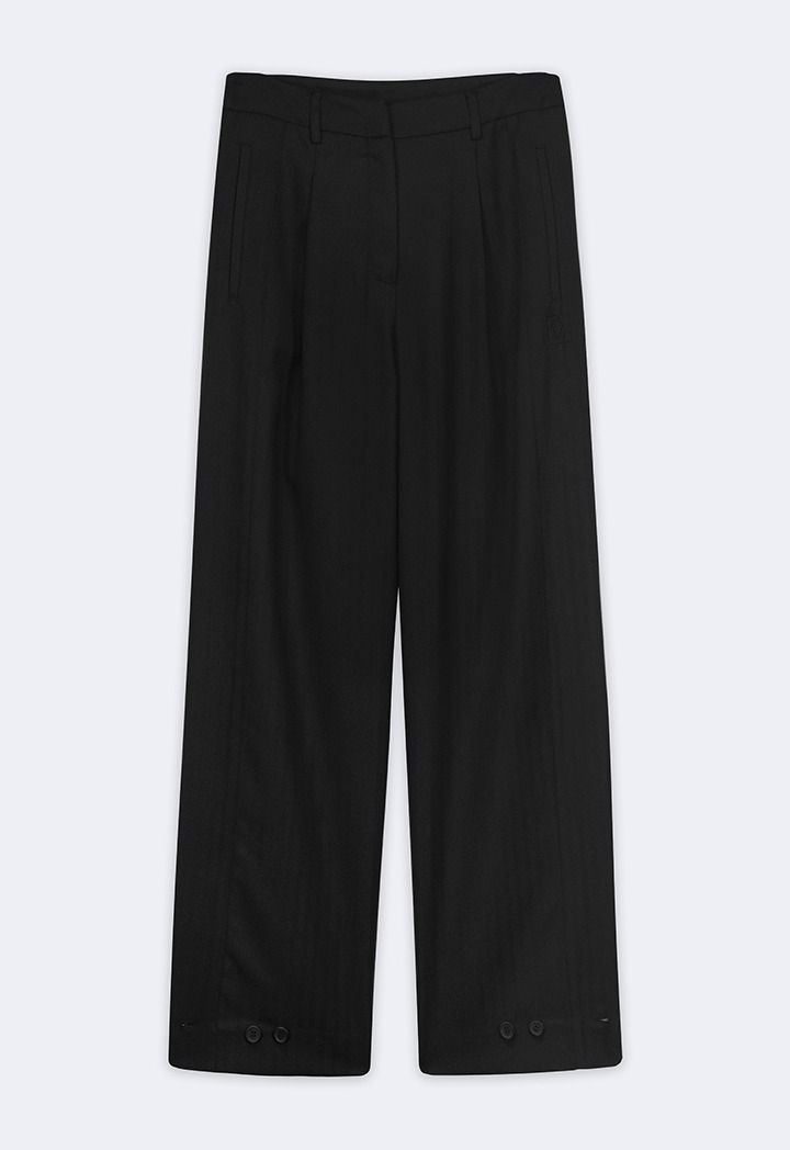 Design: Solid, High Waist, Side Pockets, Adjustable Button-Hem