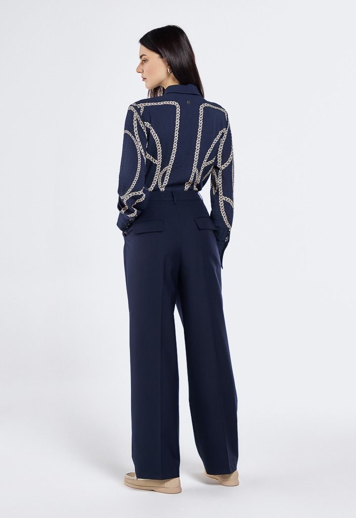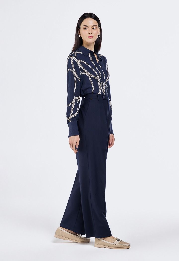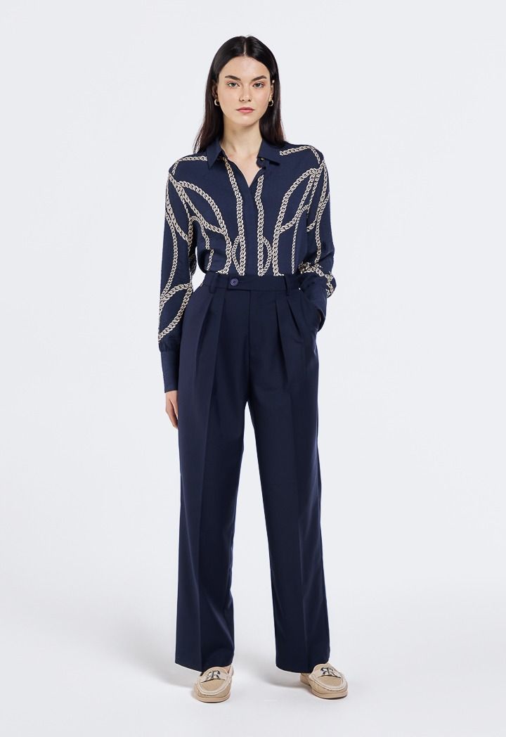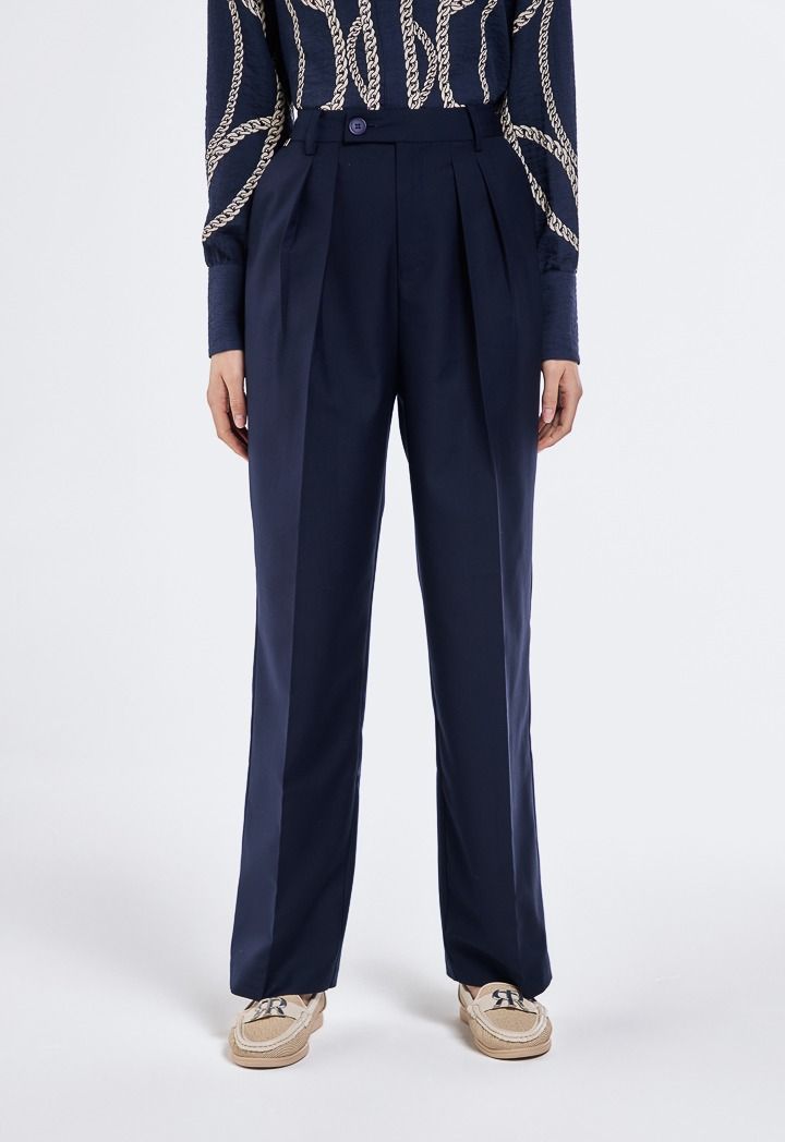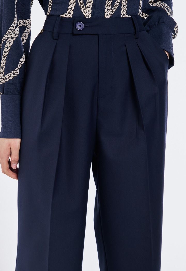 Design: Solid, Front-Pleated, Side Pockets, High Waist, Straight Cut