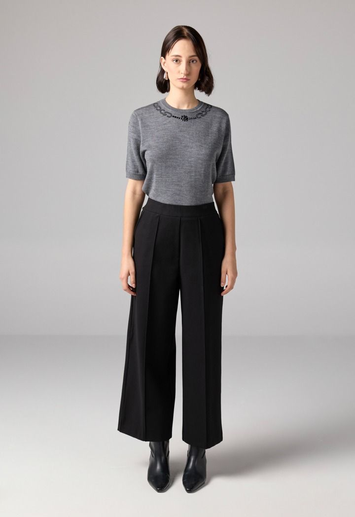 Design: Solid, High Waist, Side Pockets, Wide Leg, Pin Tuck At Front