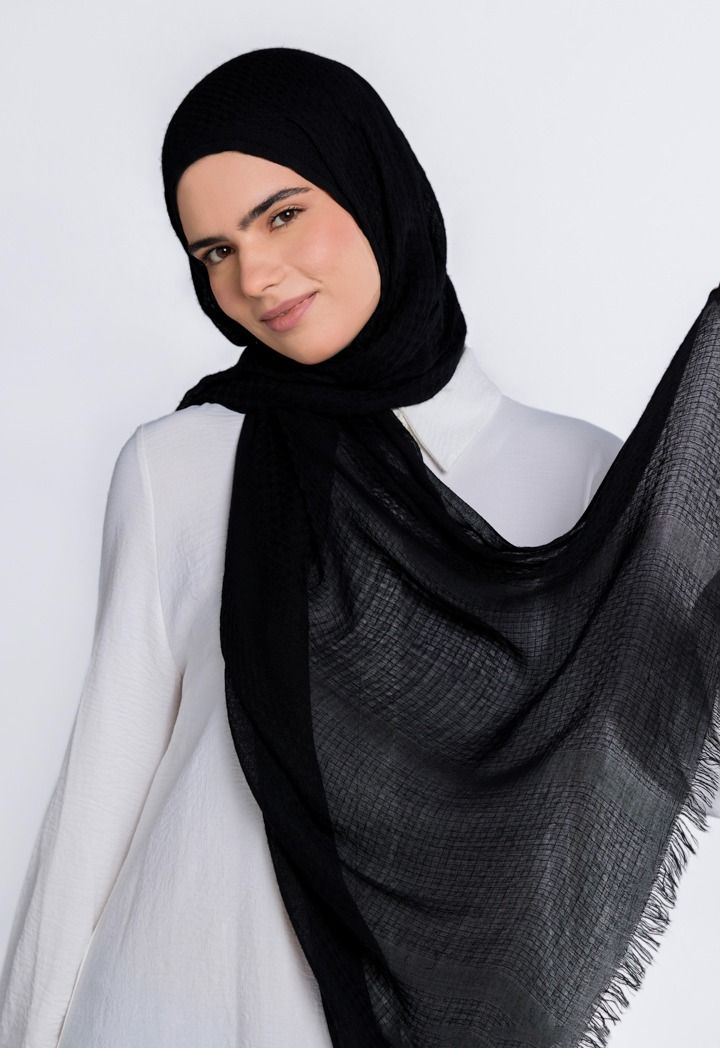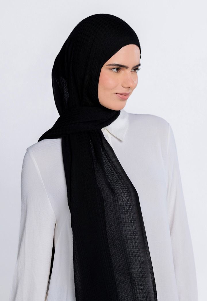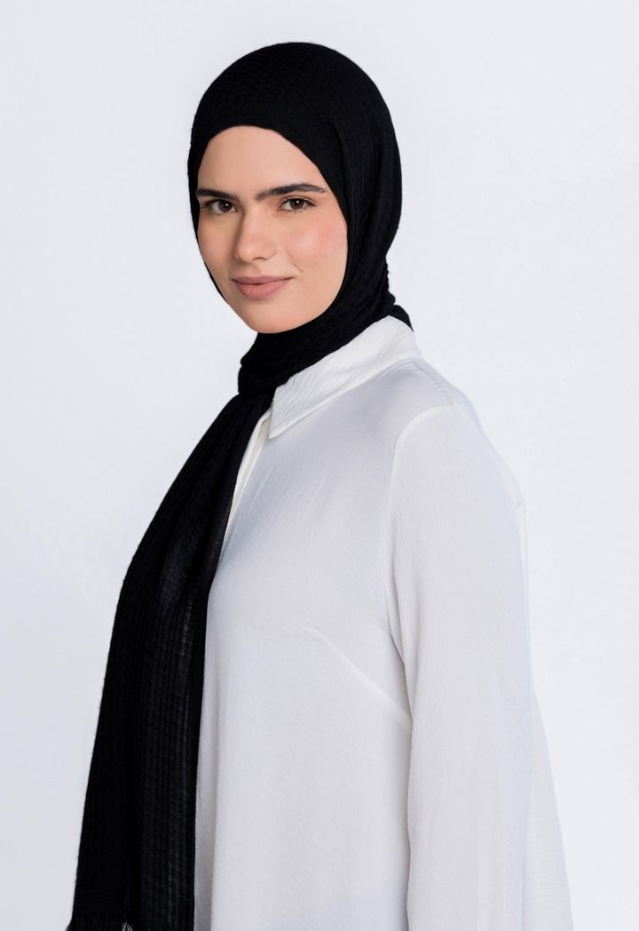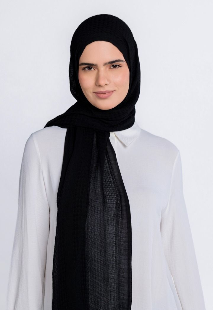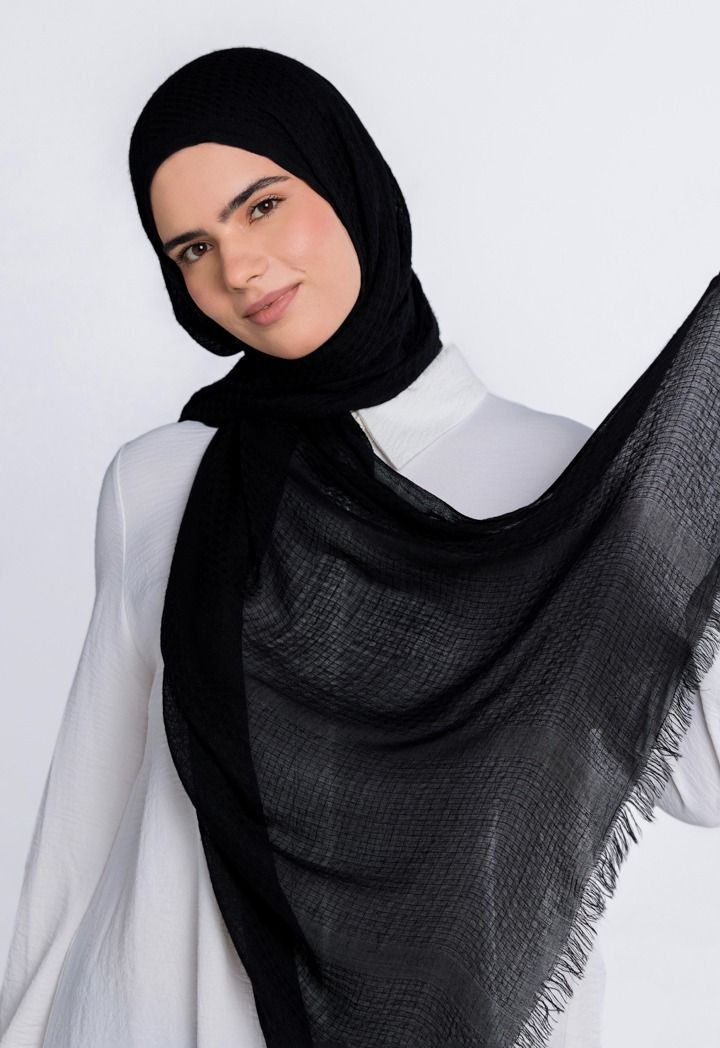 A practical design of a hijab that is also multipurpose, you can wear it as a hijab or as a shawl.