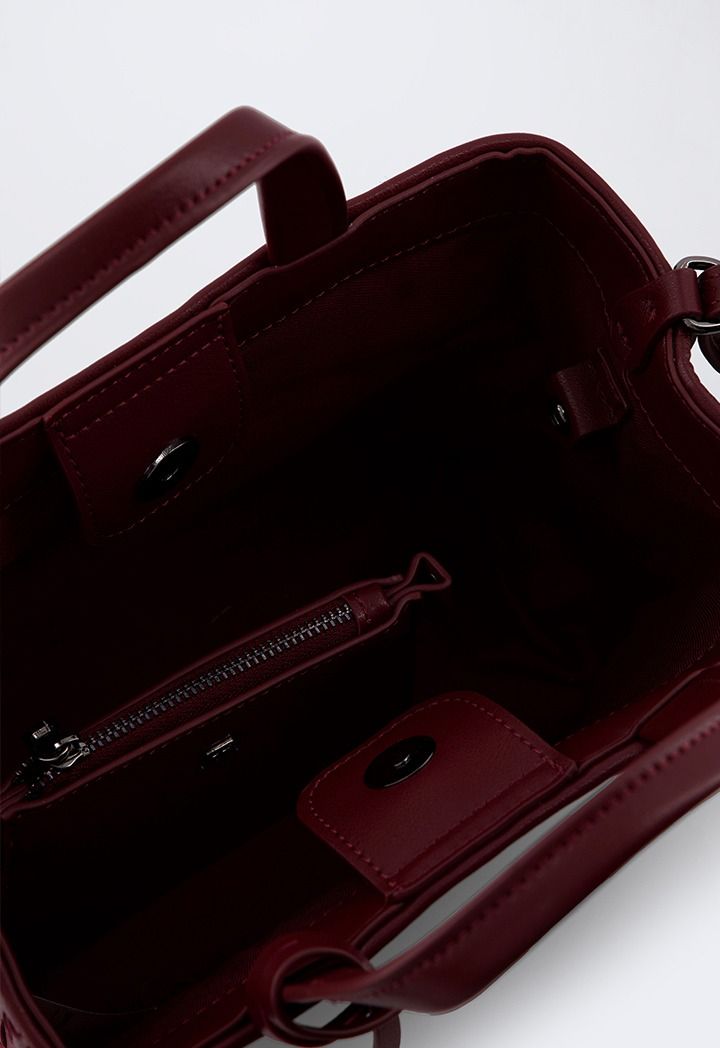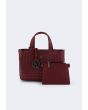 Design : PU Leather, Intricate, Top Handle, Detachable Strap, Metallic Emblem, Inner Pocket