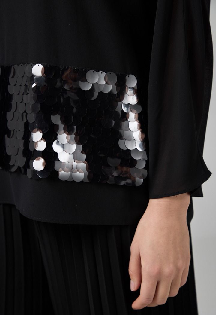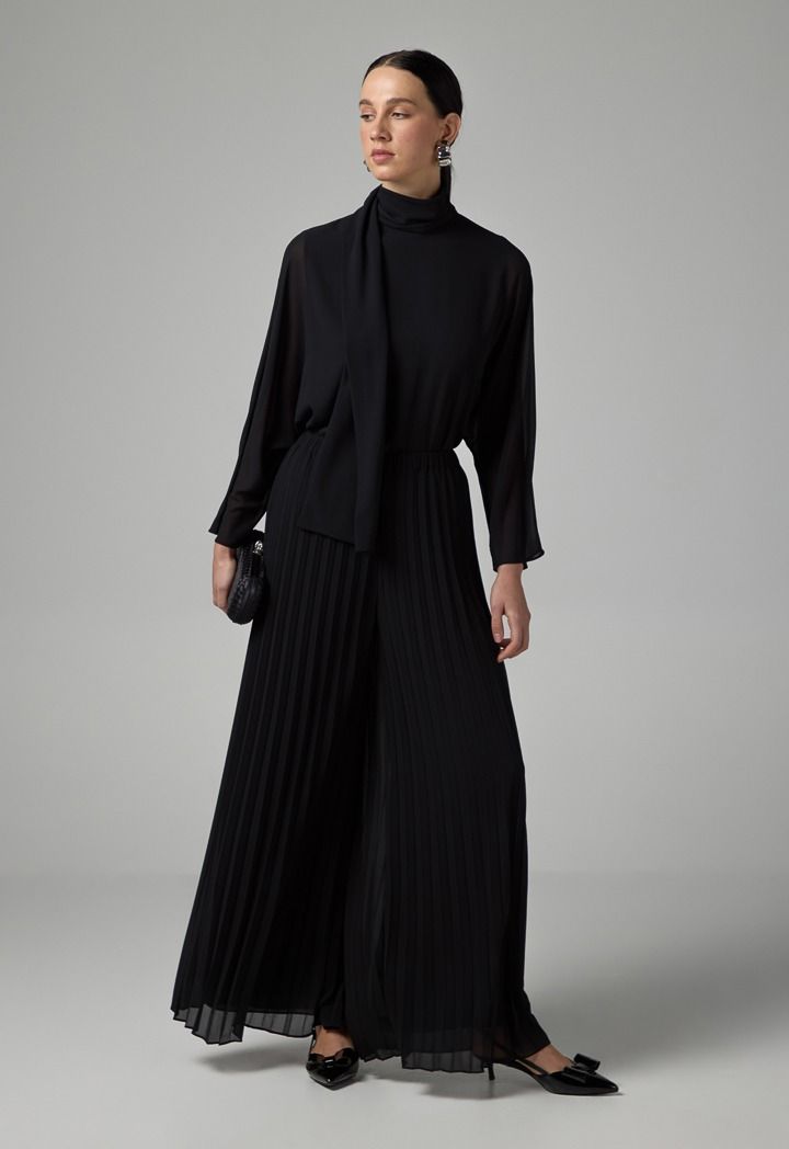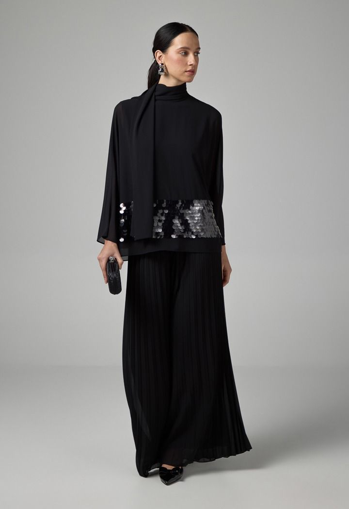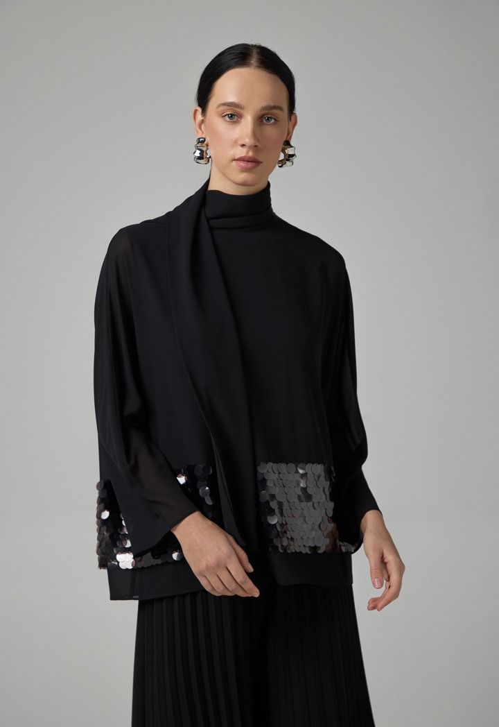 Lend a dose of vibrancy and fashion to your wardrobe with this gorgeous Blouse, this trendy blouse flaunts long kimono sleeves And Round Neck With attachable Scarf.