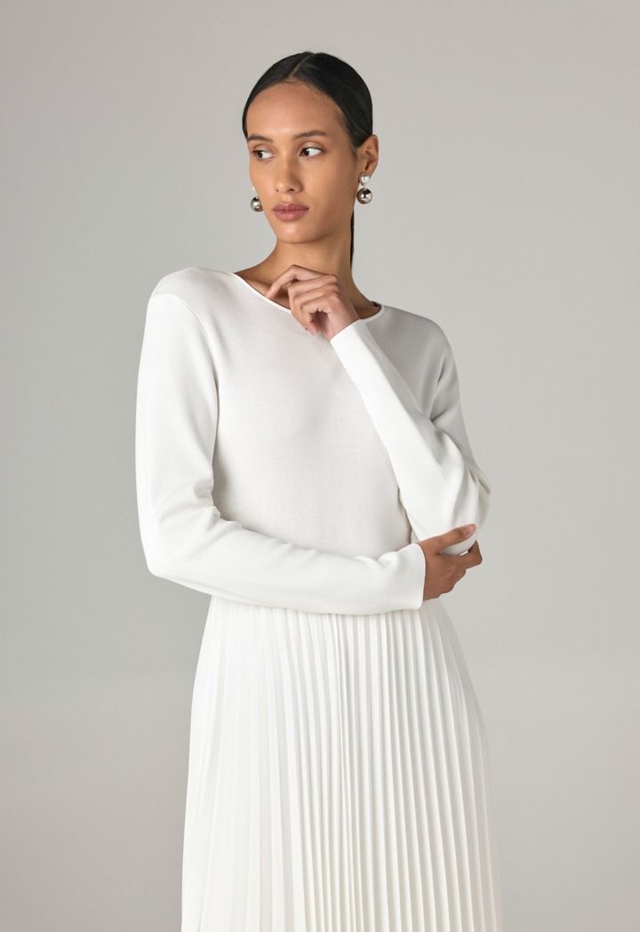 Solid Knitted Pleated Dress - Timeless Basic Style | Riva Fashion