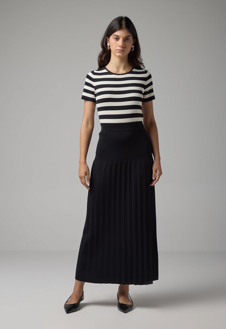 Carry a refined style with this elegant Maxi knitted Pleated Skirt.
