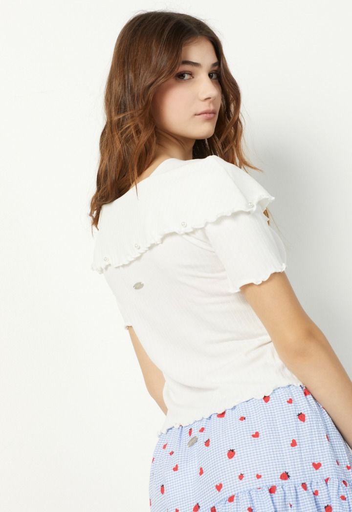 Expand your collection of blouses with this solid knitted one, featuring a soft knitted design and a Square neck.