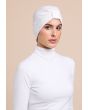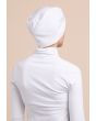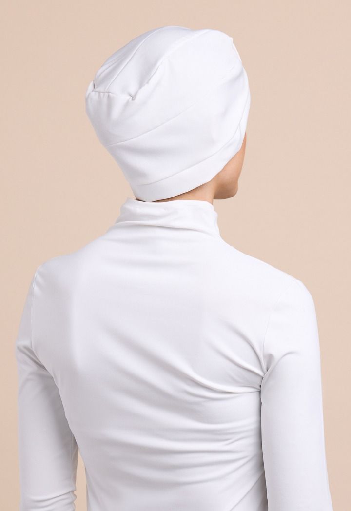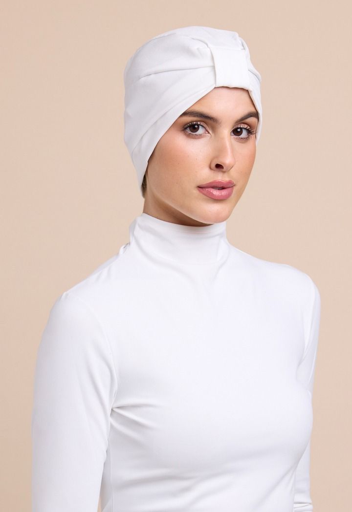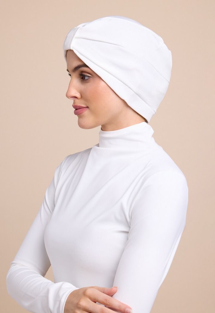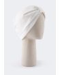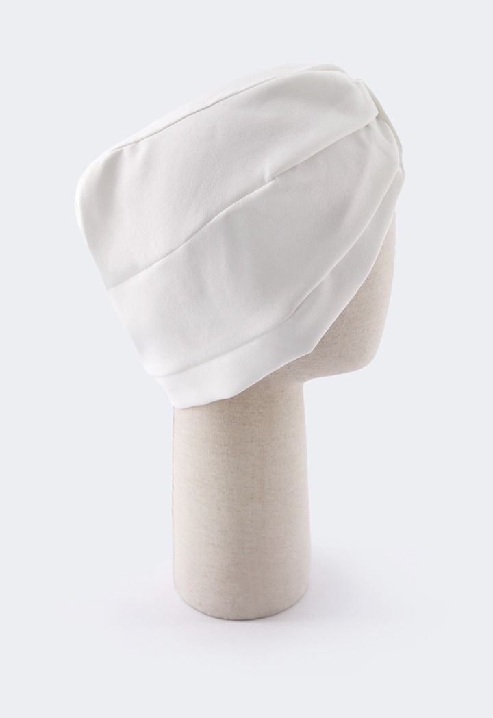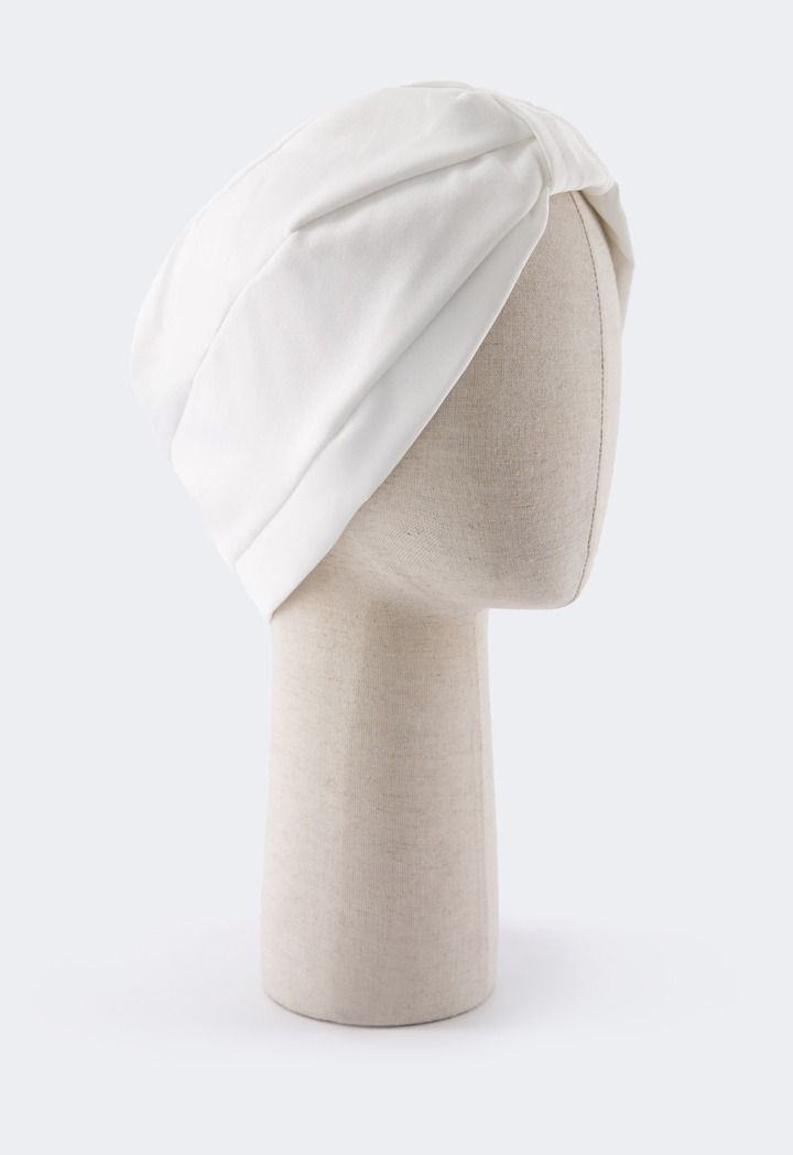This turban features a solid design with a stylish knot, offering a simple yet elegant look.