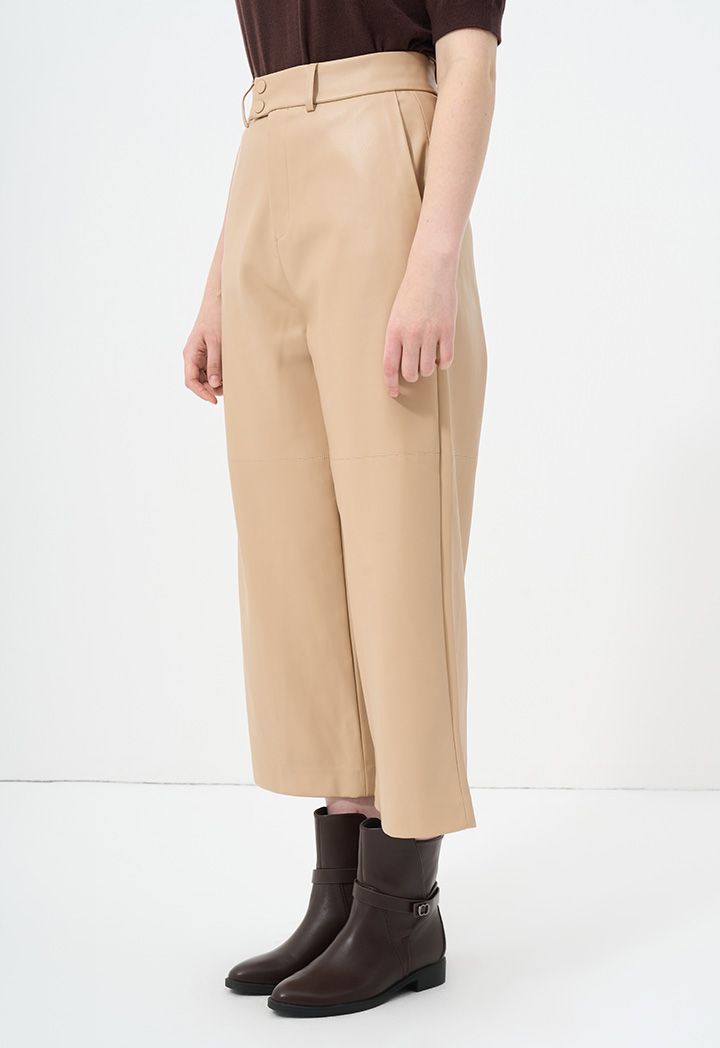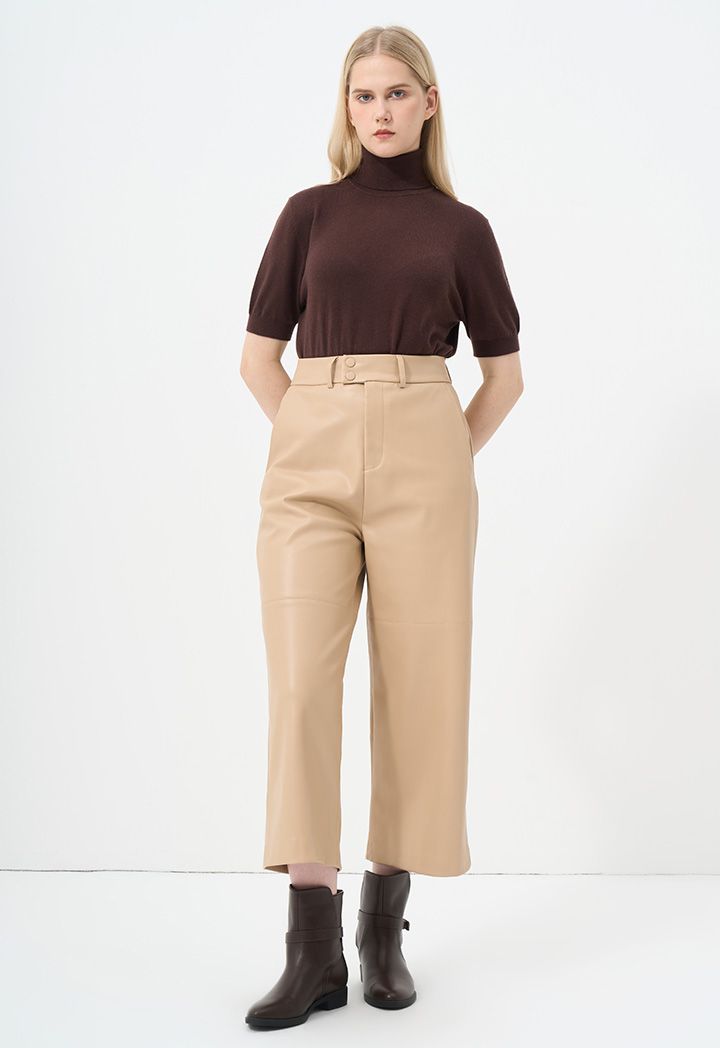 Design: Solid, Wide Legs, Pockets, Faux Leather