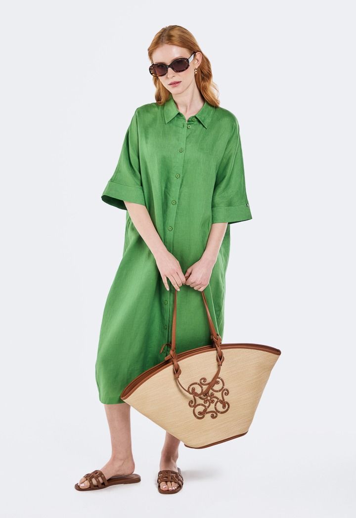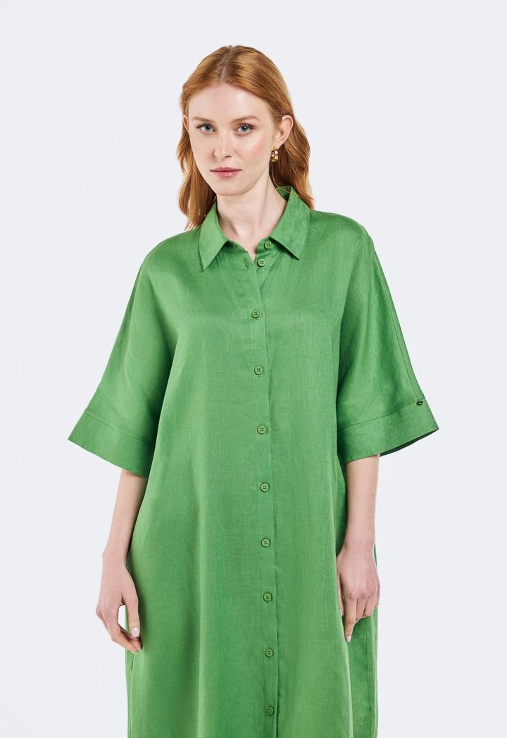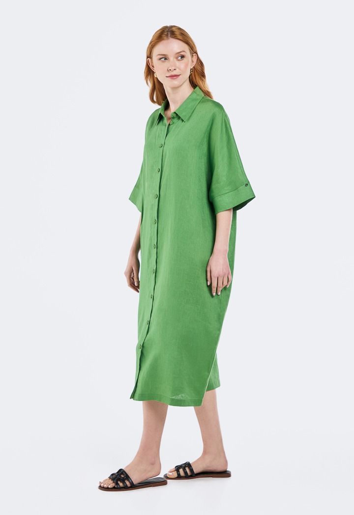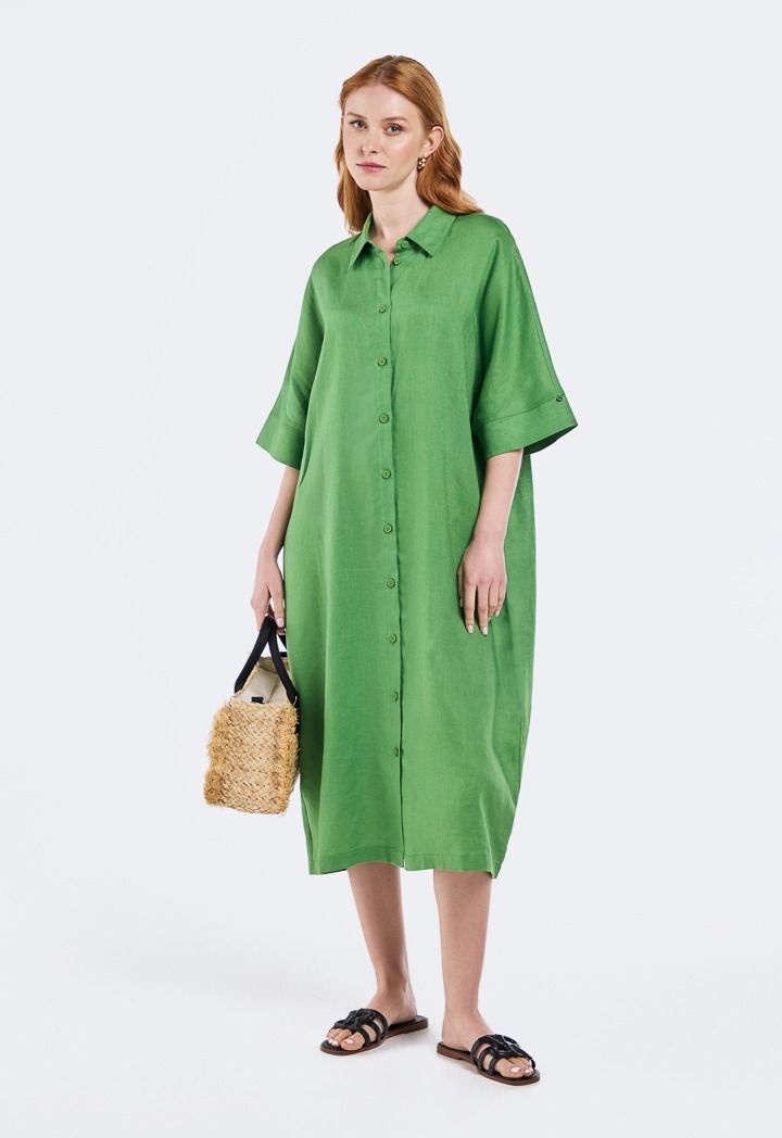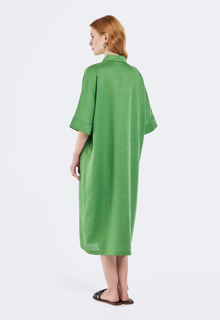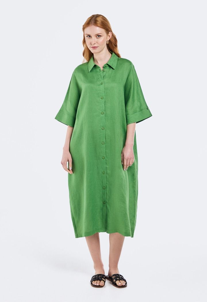 Solid Linen Midi Dress |