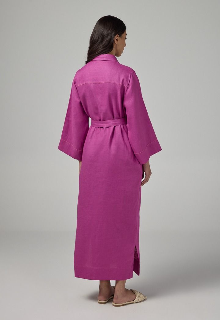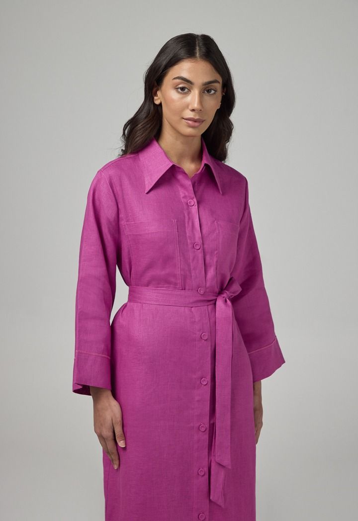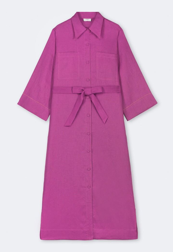 Design: Solid, Linen, Side Pockets, Front Pockets, Self Fabric Belt, Side Slit