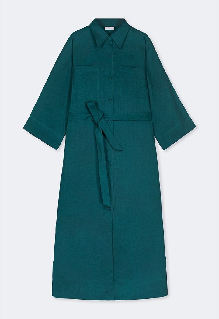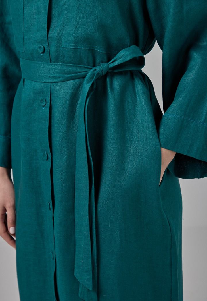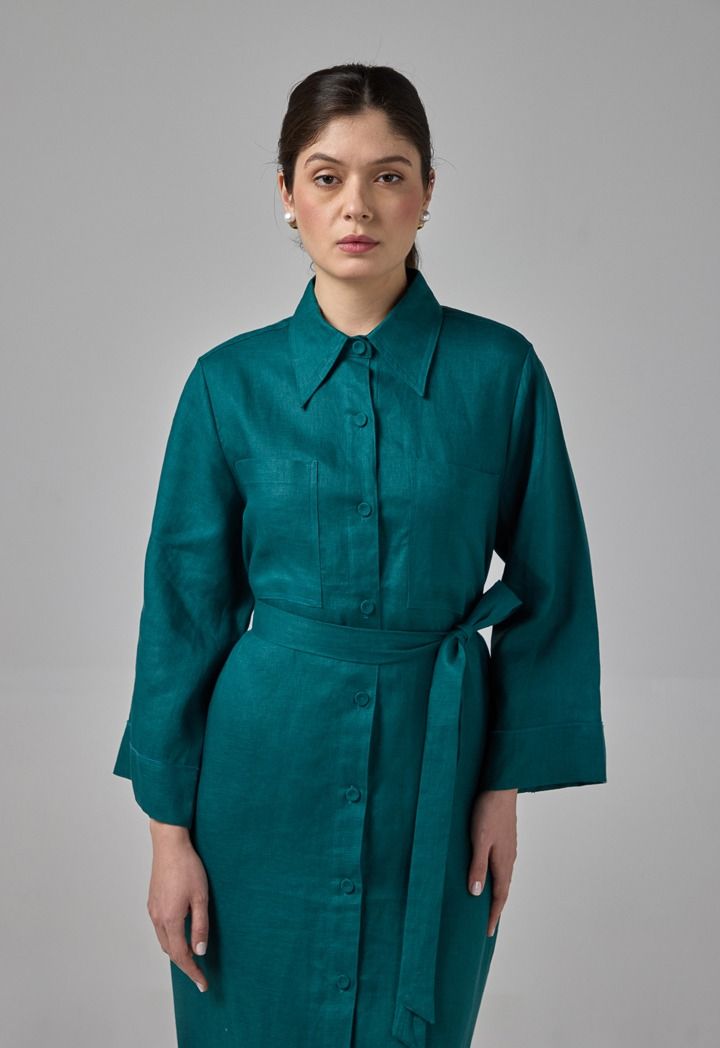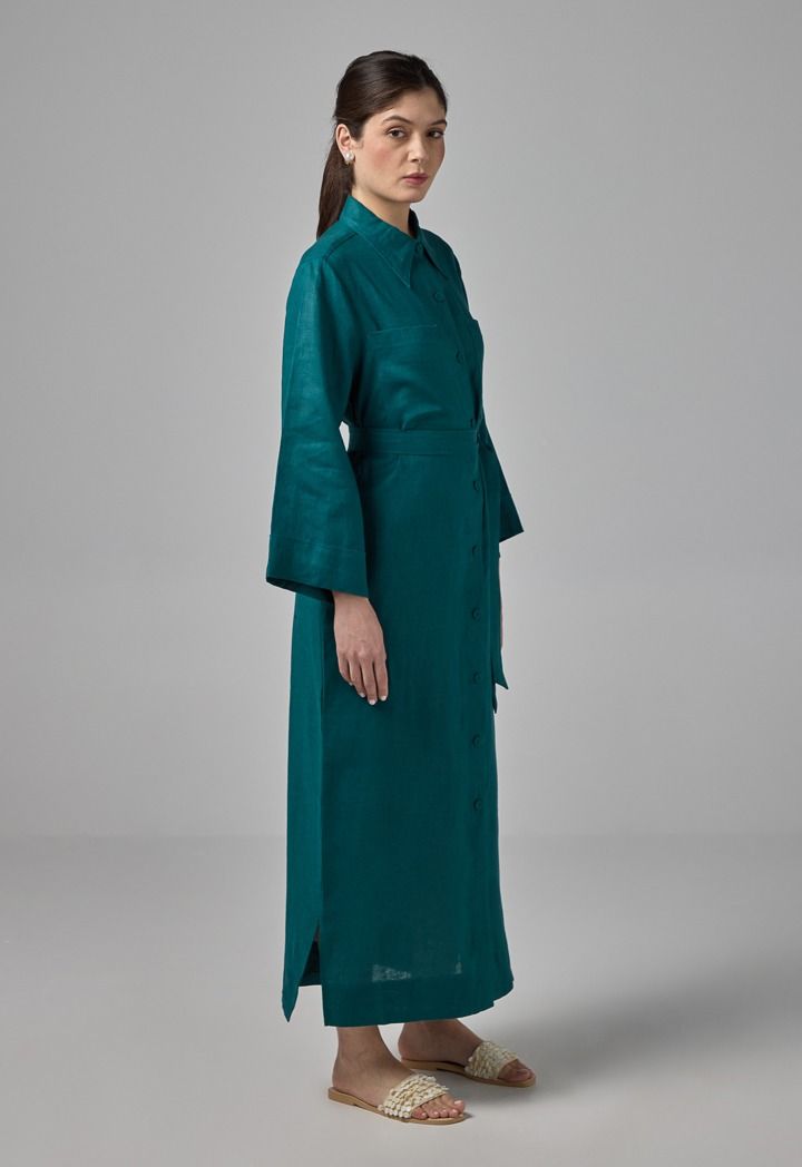 Design: Solid, Linen, Side Pockets, Front Pockets, Self Fabric Belt, Side Slit