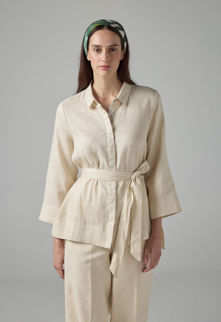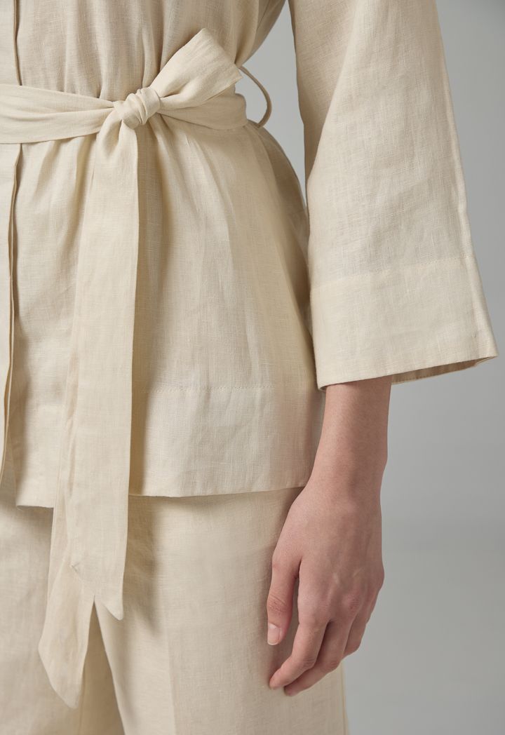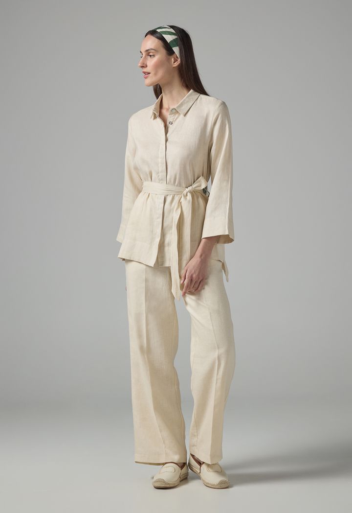 Design: Solid, High-Low, Self Fabric Belt, Side Slit At Hem