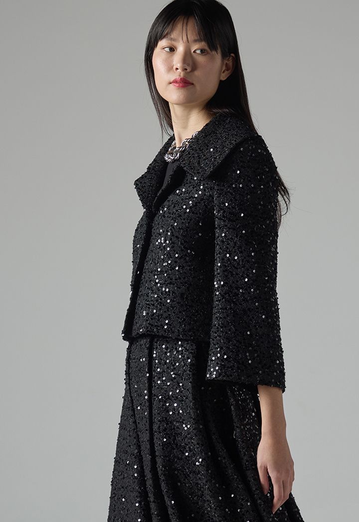 Solid Long Sleeve Tweed Jacket |