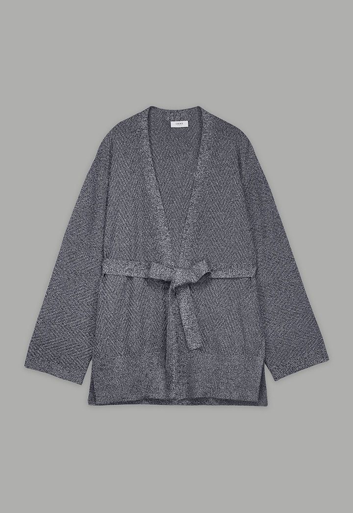 Solid Lurex Knitted Belted Cardigan |