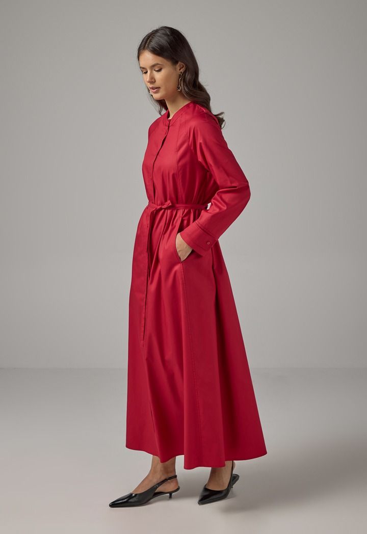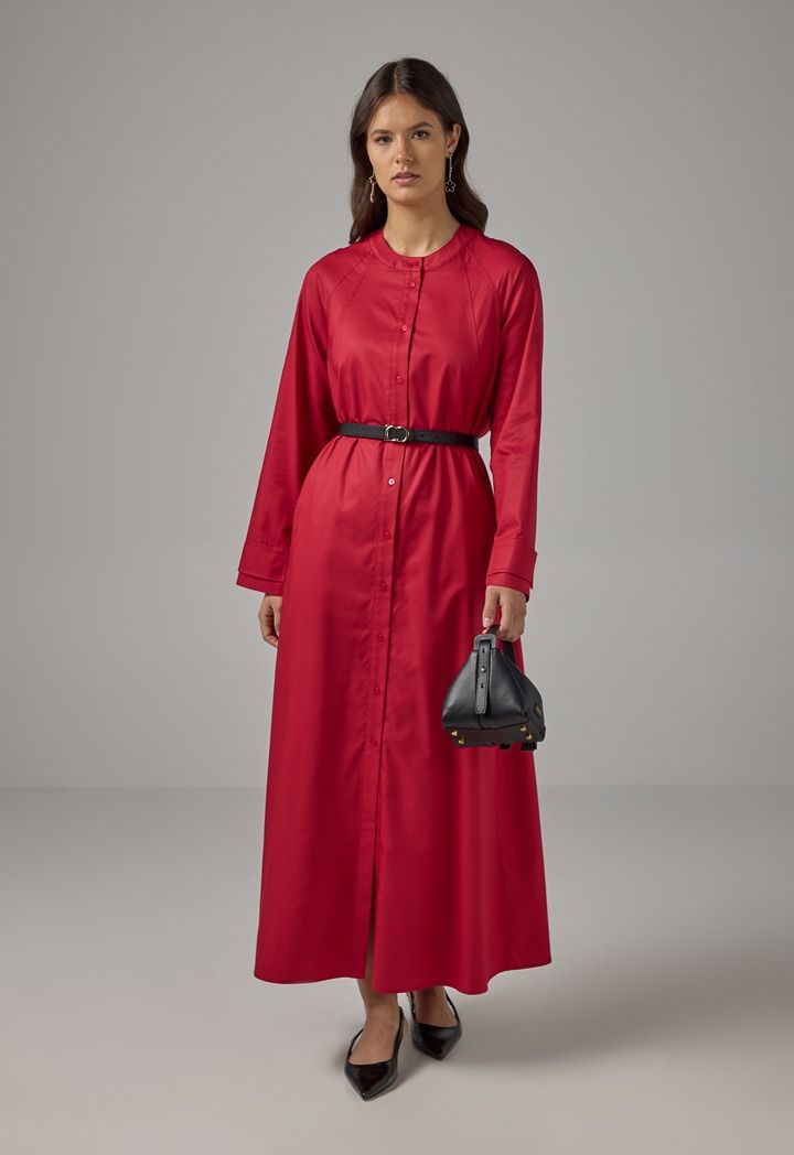 Solid Mandarin Collar Maxi Dress |
