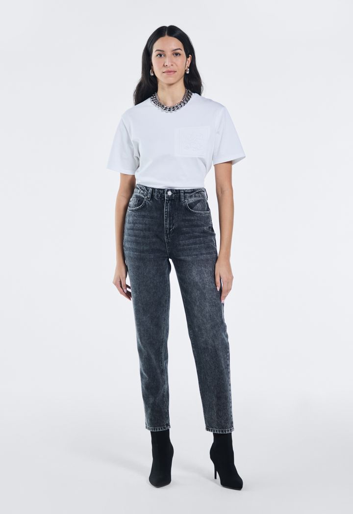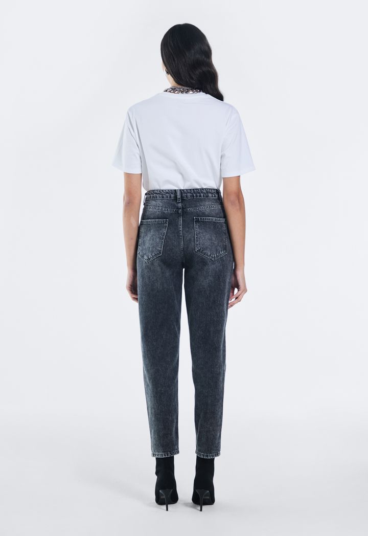 Design: Solid, High Waist, Side and Back Pockets, Mom Fit, Denim