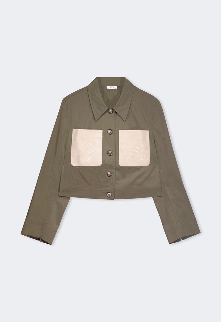 Design: Solid, Faux Leather Patch Pockets With Debossed Monogram details