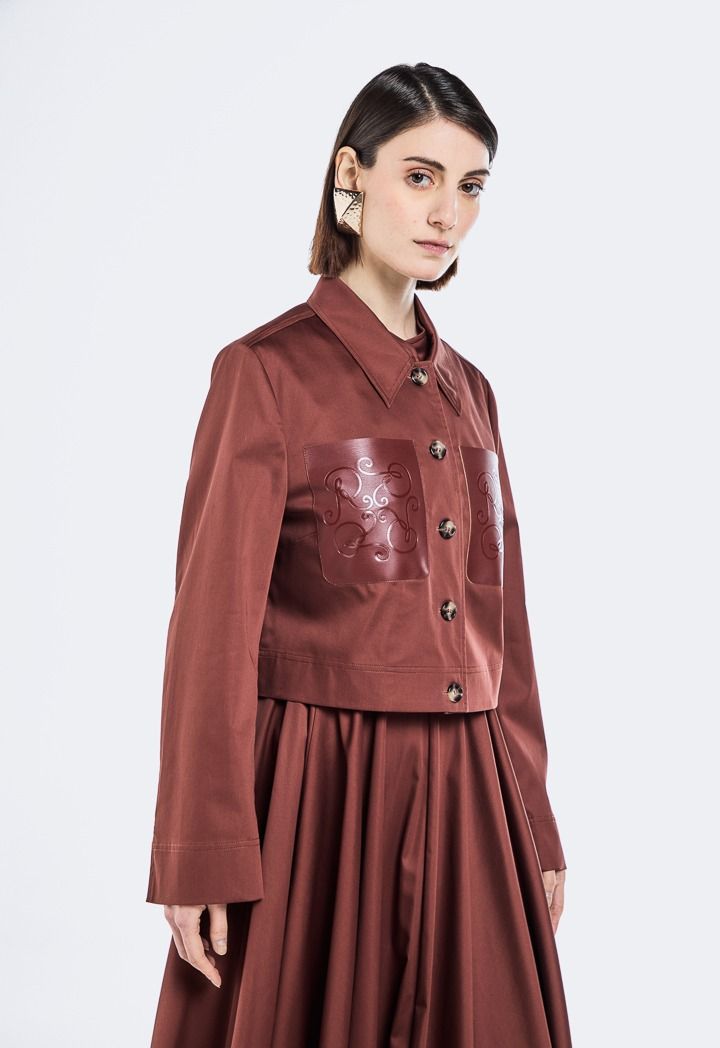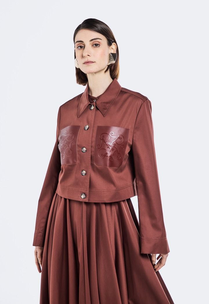 Design: Solid, Faux Leather Patch Pockets With Debossed Monogram details