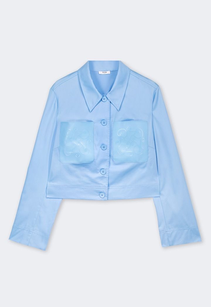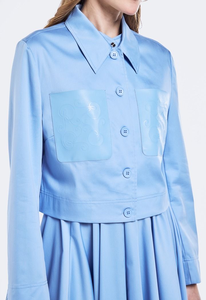 Design: Solid, Faux Leather Patch Pockets With Debossed Monogram details