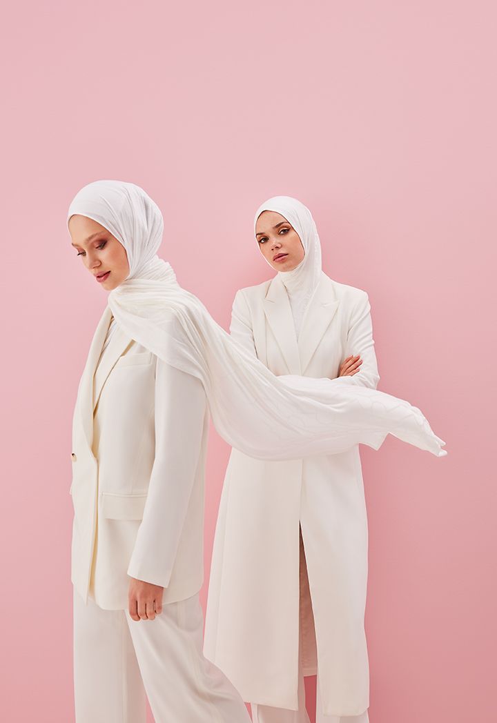 A special hijab design that features Riva's signature monogram to match it with you Riva attires.