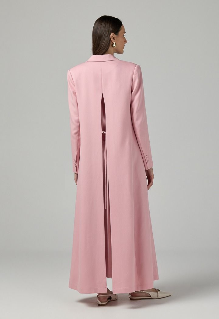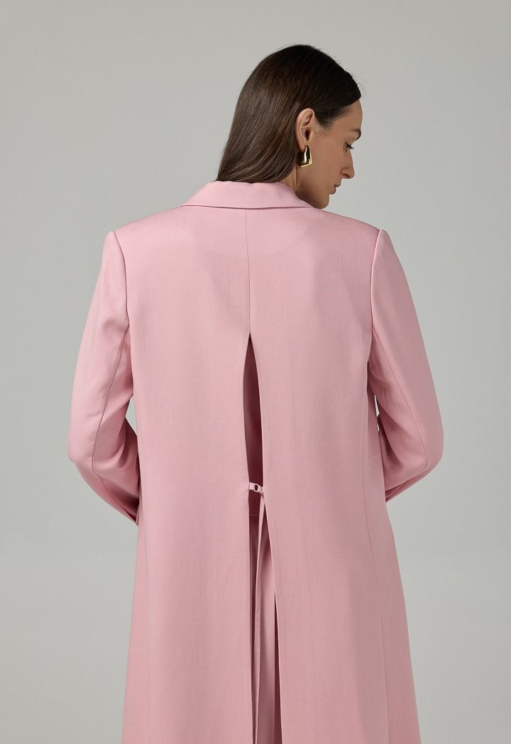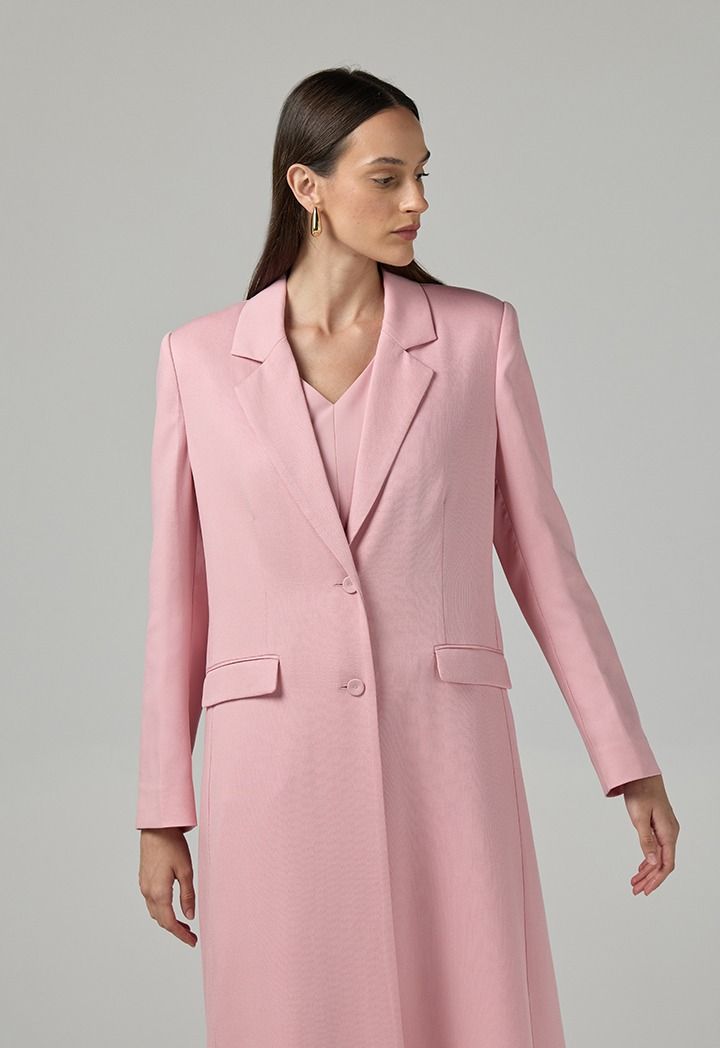 Design: Solid, Front Flap Pockets, Back Slit Hem, Attached Lining