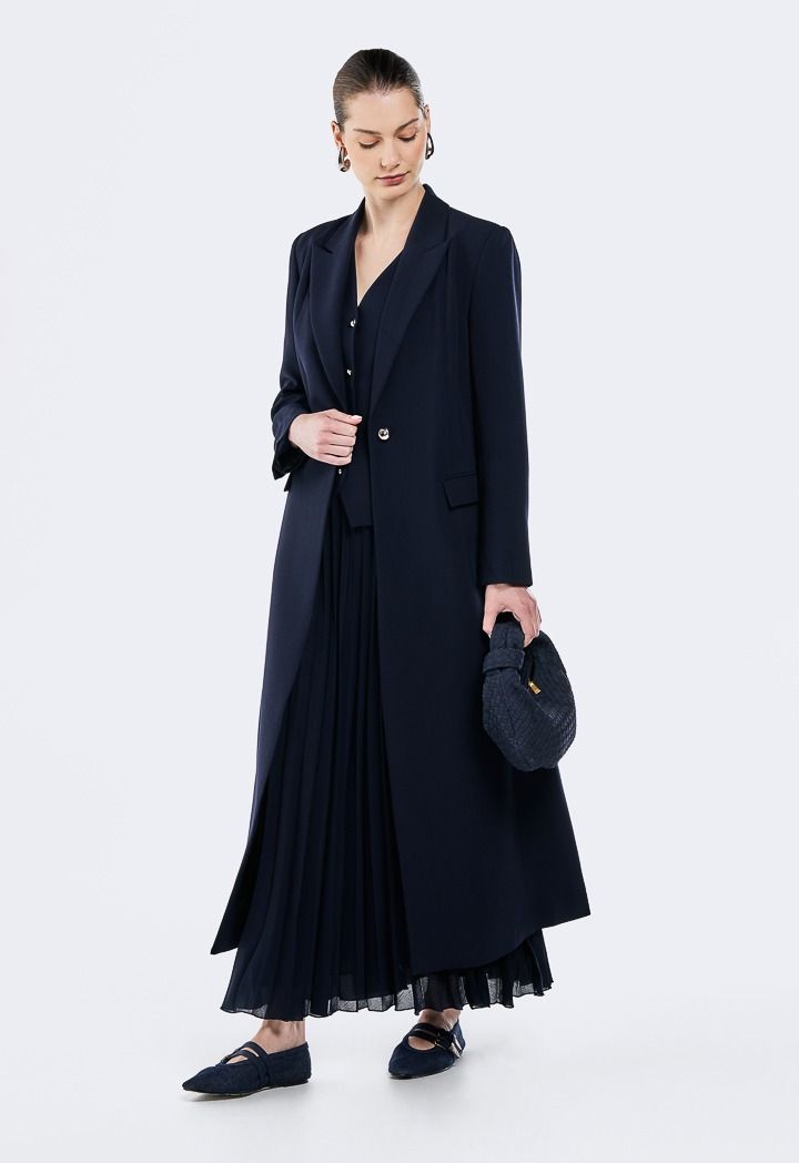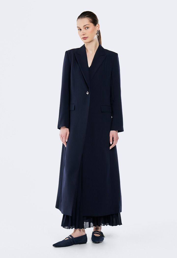 Step into sophistication with this solid notched collar coat, designed to offer a clean, tailored look that complements both casual and formal outfits.